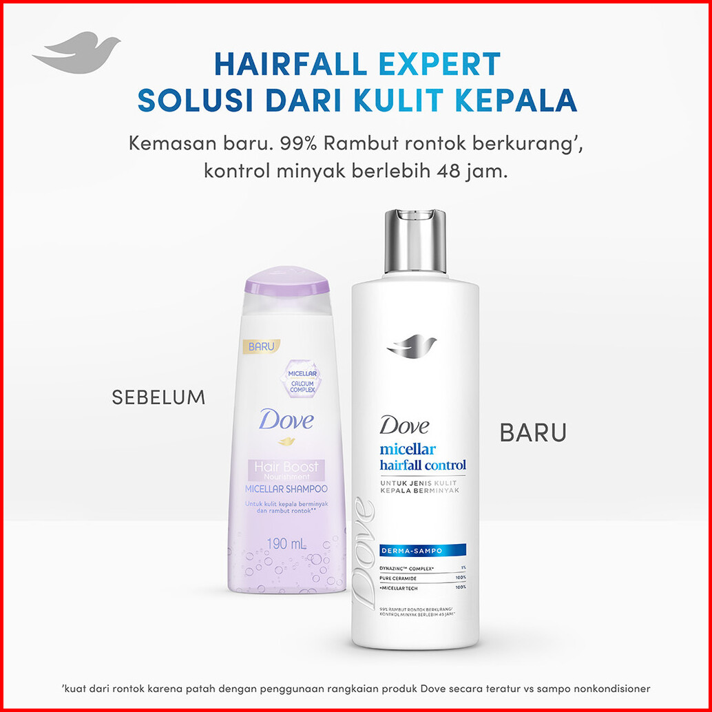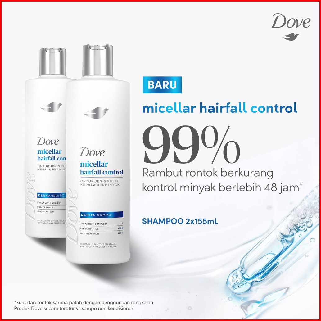 Dove Shampoo Micellar Hairfall Control 155ml X2 Sampo Perawatan Rambut Rontok Untuk Jenis Kulit Kepala Berminyak