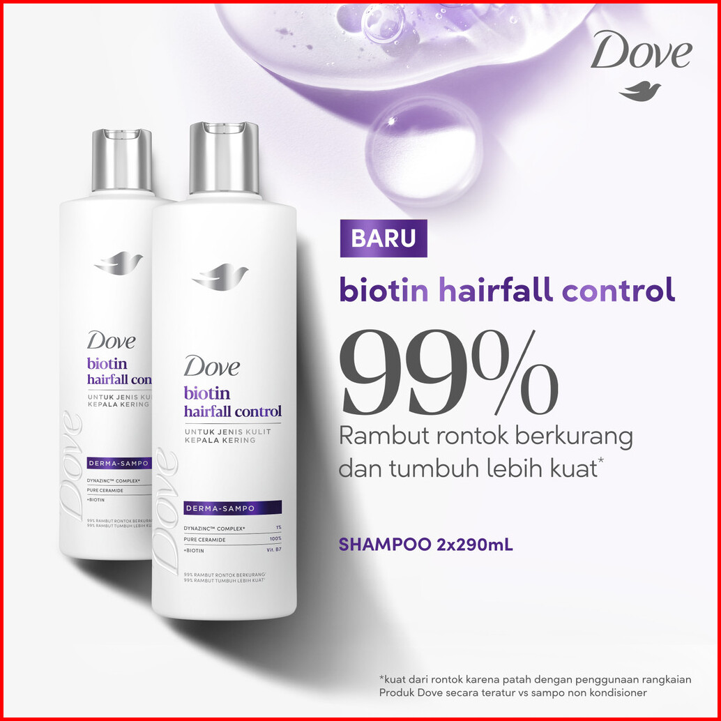 Dove Shampoo Biotin Hairfall Control 290ml X2 Sampo Perawatan Rambut Rontok Untuk Jenis Kulit Kepala Kering Dan Sehat