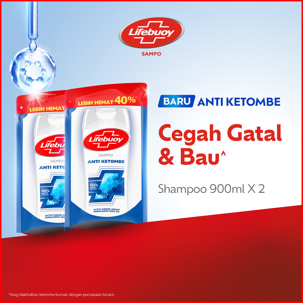 Lifebuoy Shampoo Anti Ketombe Anti Dandruff Lawan Kuman Penyebab Ketombe - Cegah Gatal Bau 900ml X2