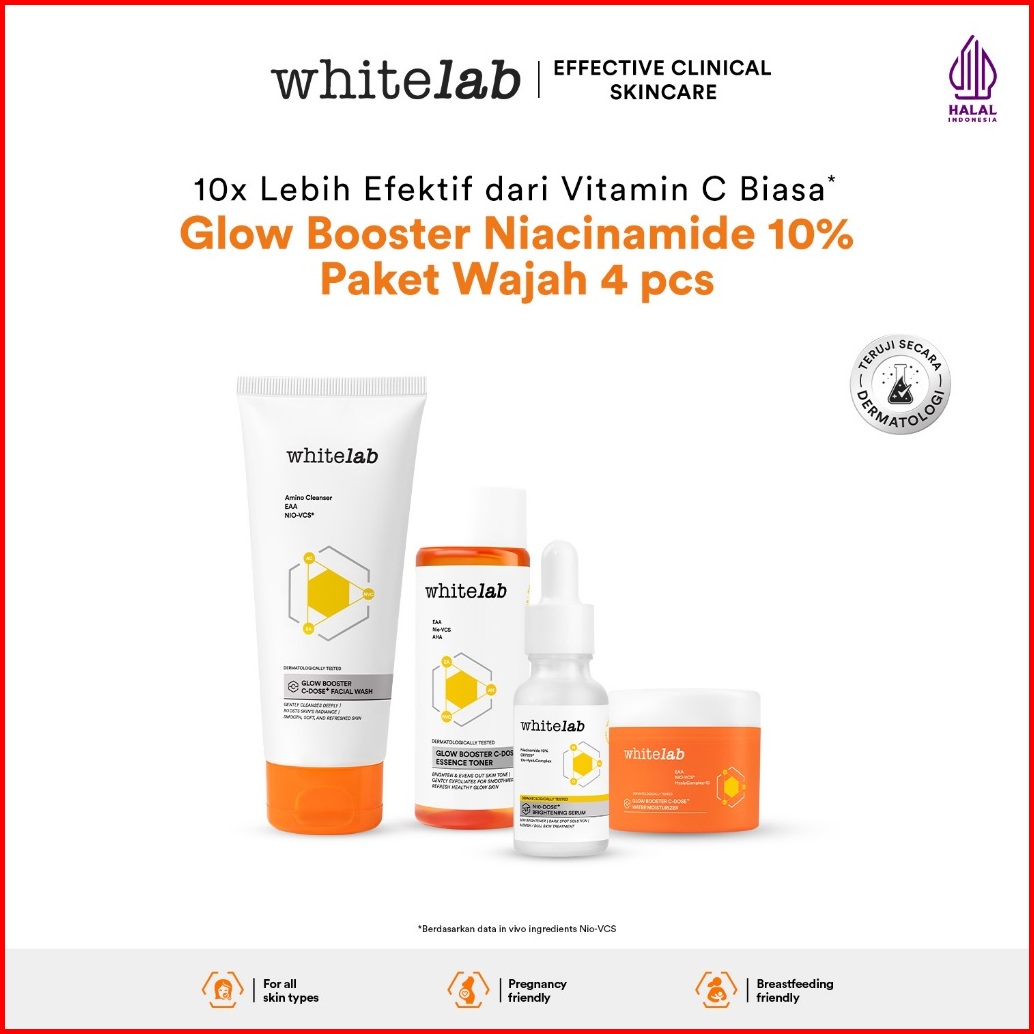 Whitelab 4 Pcs Glow Booster C-dose Brightening Paket Wajah - Facial Wash Toner Serum With Moisturizer Paket Skincare