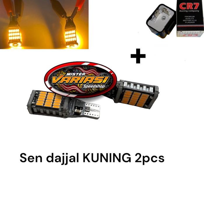 PAKETAN HEMAT LAMPU SEIN SEN DAJJAL 4 PCS + FLASER SEN CR7 ori UNIVERSAL SEMUA MOTOR - 4PCS SEN DAJJAL KUNING + FLASER S