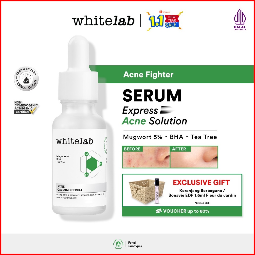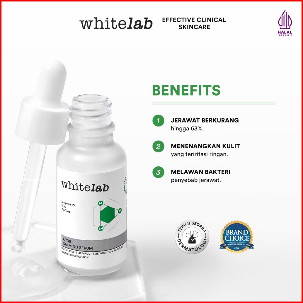 Whitelab Acne Calming Serum - Serum Untuk Kulit Jerawat Bruntusan Dan Berminyak Dengan Mugwort Bha Tea Tree Bpom