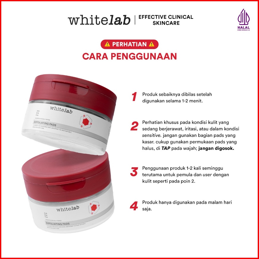 Whitelab Exfoliating Pads Peeling Aha Bha Pha - Pads Eksfoliasi Pengangkat Sel Kulit Mati Memperbaiki Tekstur Kulit Kome