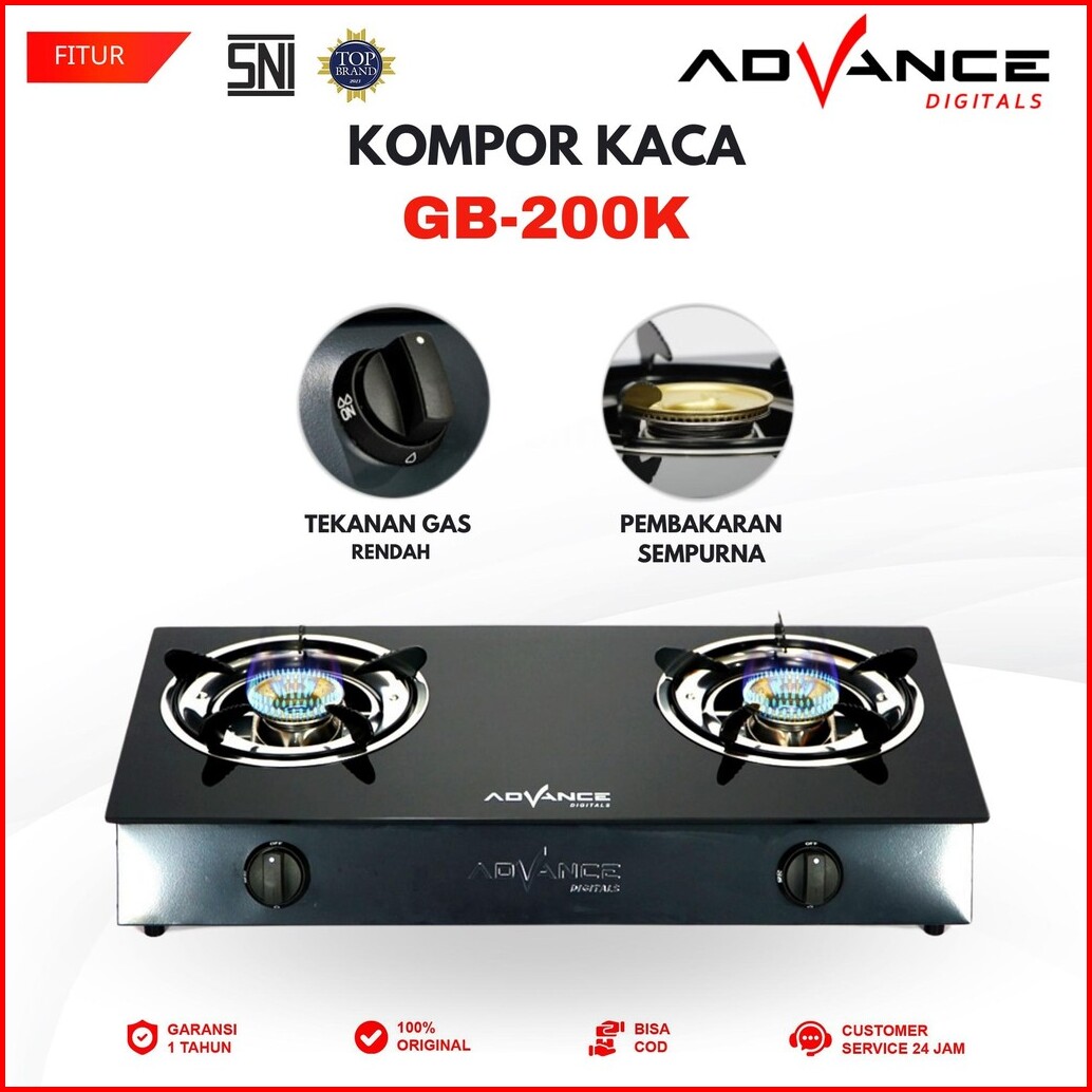 Advance Gb-200k Kompor 2 Tungku Kaca Api Biru Bahan Tebal Irit Garansi Resmi 1 Tahun