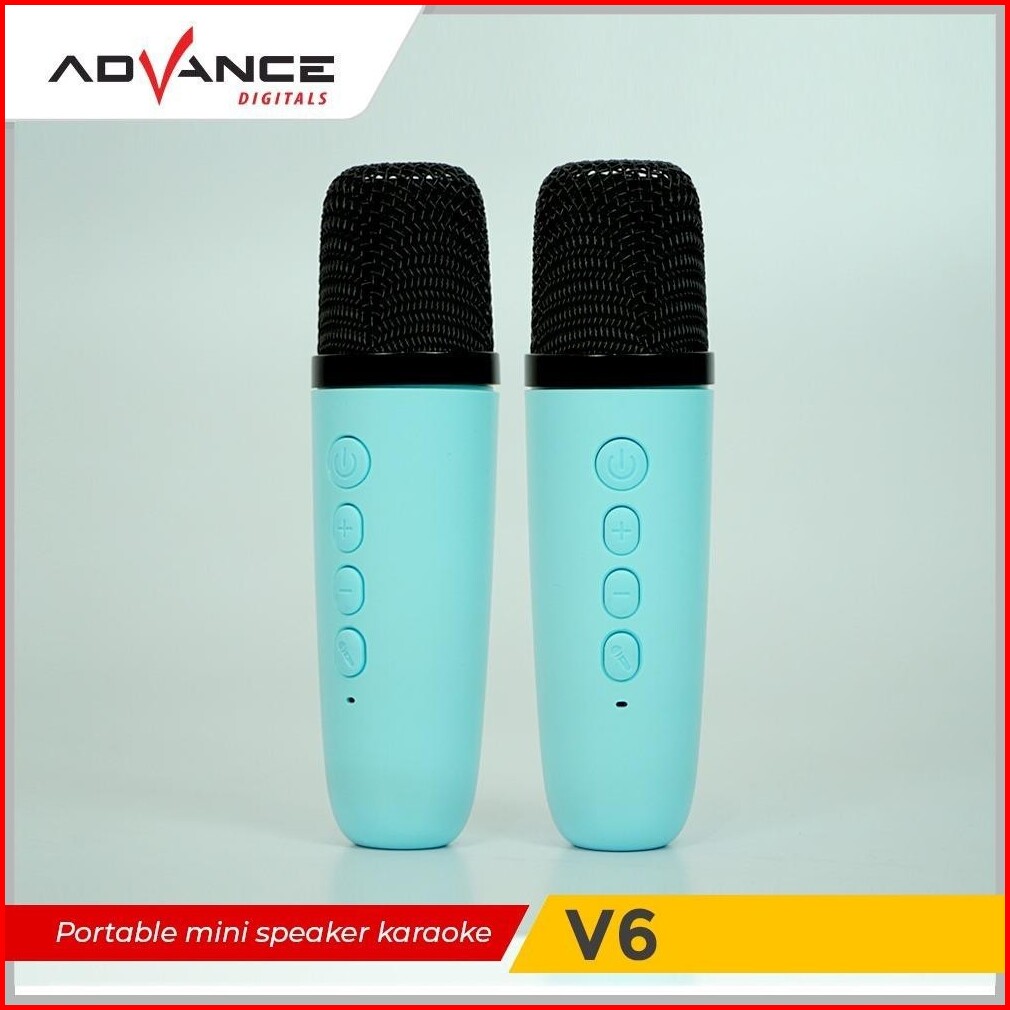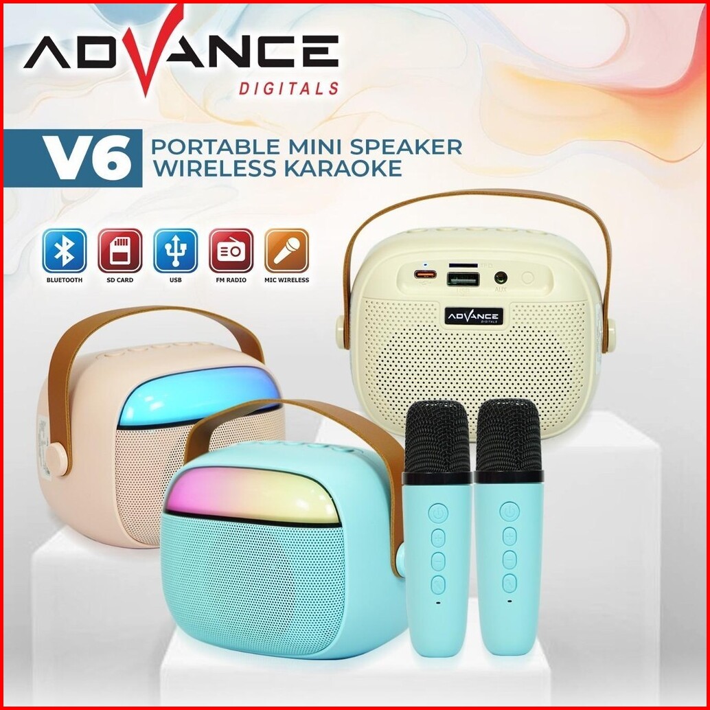 Advance V6 Portable Speaker 2 Mic Karaoke Plus Lampu Bluetooth Karaoke Speaker Komputer Speaker Rak Buku Suara Bass Gara