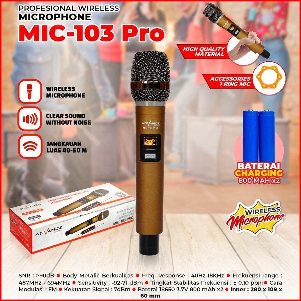 Advance Mic-103 Pro Microphone Wireless Single Recharger Led Mikrofon Gratis Ongkir