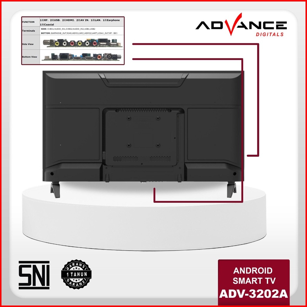 Advance Adv-3202a Android Tv Smart Tv Hd 32 Wifi Lan Tv Digital Dvb-t2 C Garansi Resmi 1 Tahun