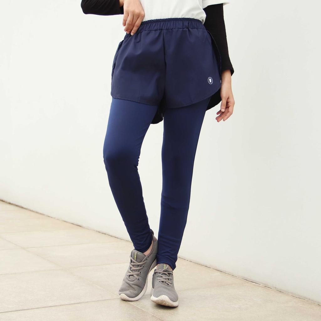 Hitjab - Celana Olahraga 2 in 1 Legging Sport Padel Wanita Lari Marathon Sepeda 8925