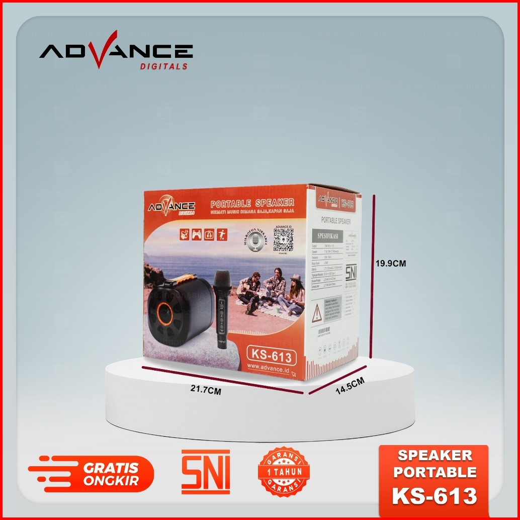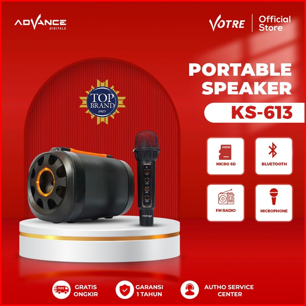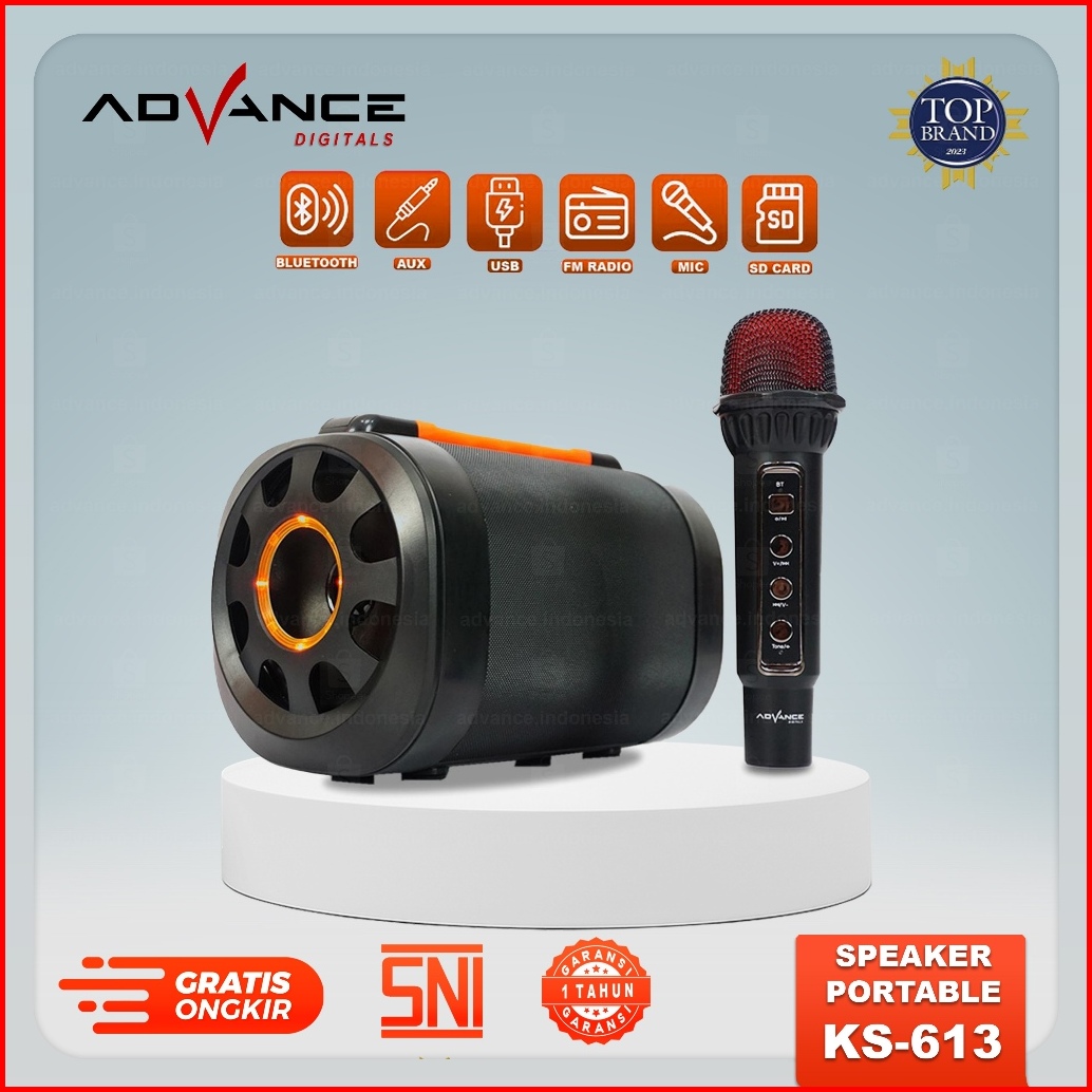 Advance Ks-613 Speaker Bluetooth Portable With Mic Wireless Karaoke Recharger Usb Garansi Resmi 1 Tahun