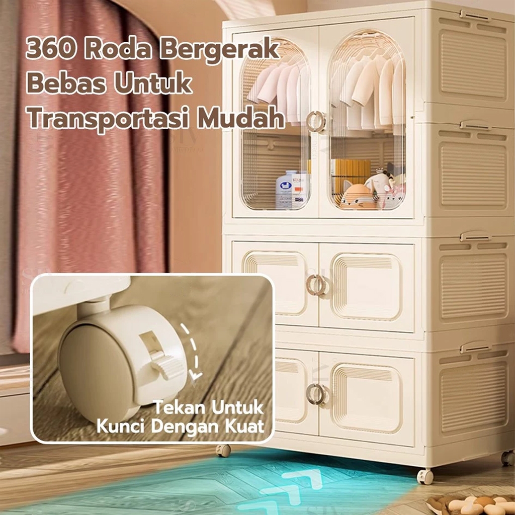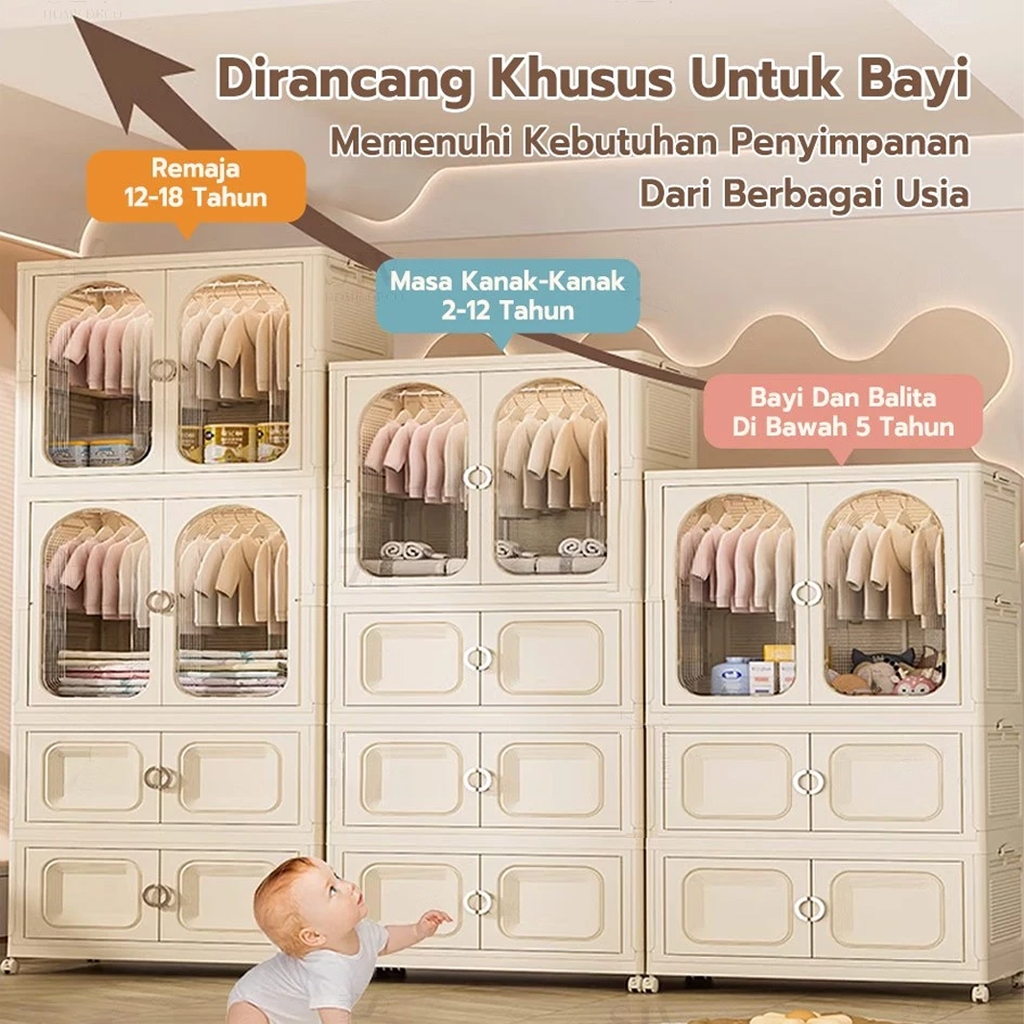 HEINO 62/80CM Lemari Baju Bayi Anak Plastik Dan Lemari Pakaian Dewasa Lemari Pakaian Estetik Minimalis Dengan Roda