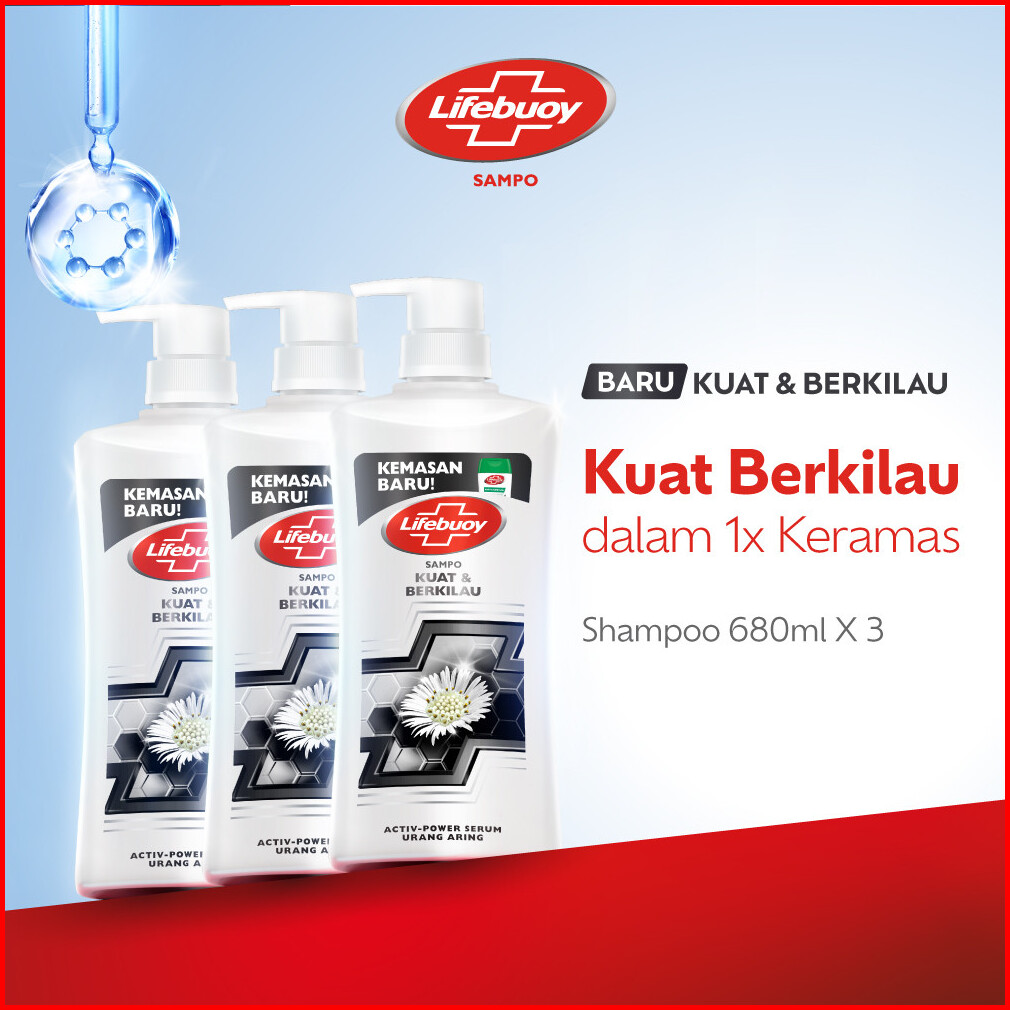 Lifebuoy Shampoo Kuat Berkilau Strong Shiny Lawan Kuman Penyebab Masalah Rambut Rambut Kusam 680ml X3