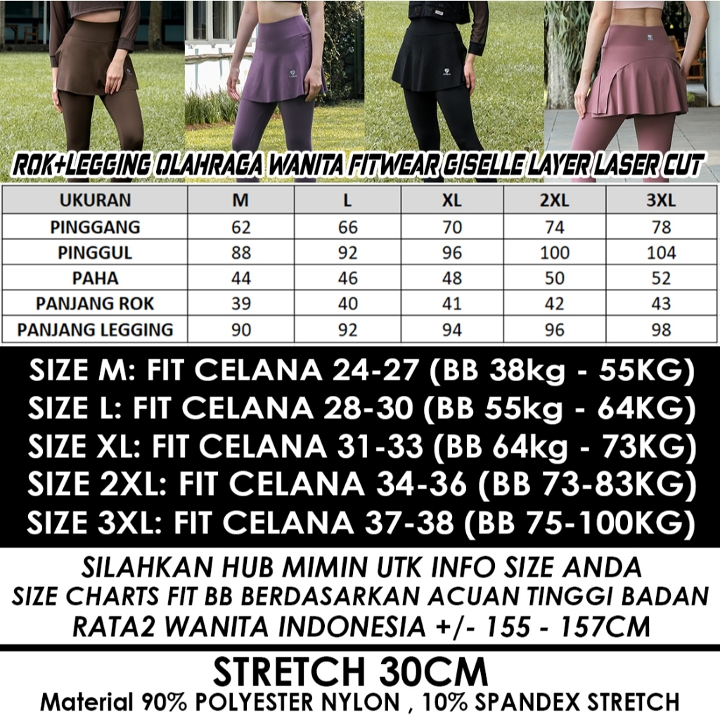 Fitwear Rok + Legging Olahraga Padel Dryfit Wanita GISELLE 𝐋𝐀𝐒𝐄𝐑 𝐂𝐔𝐓 - M - 3XL