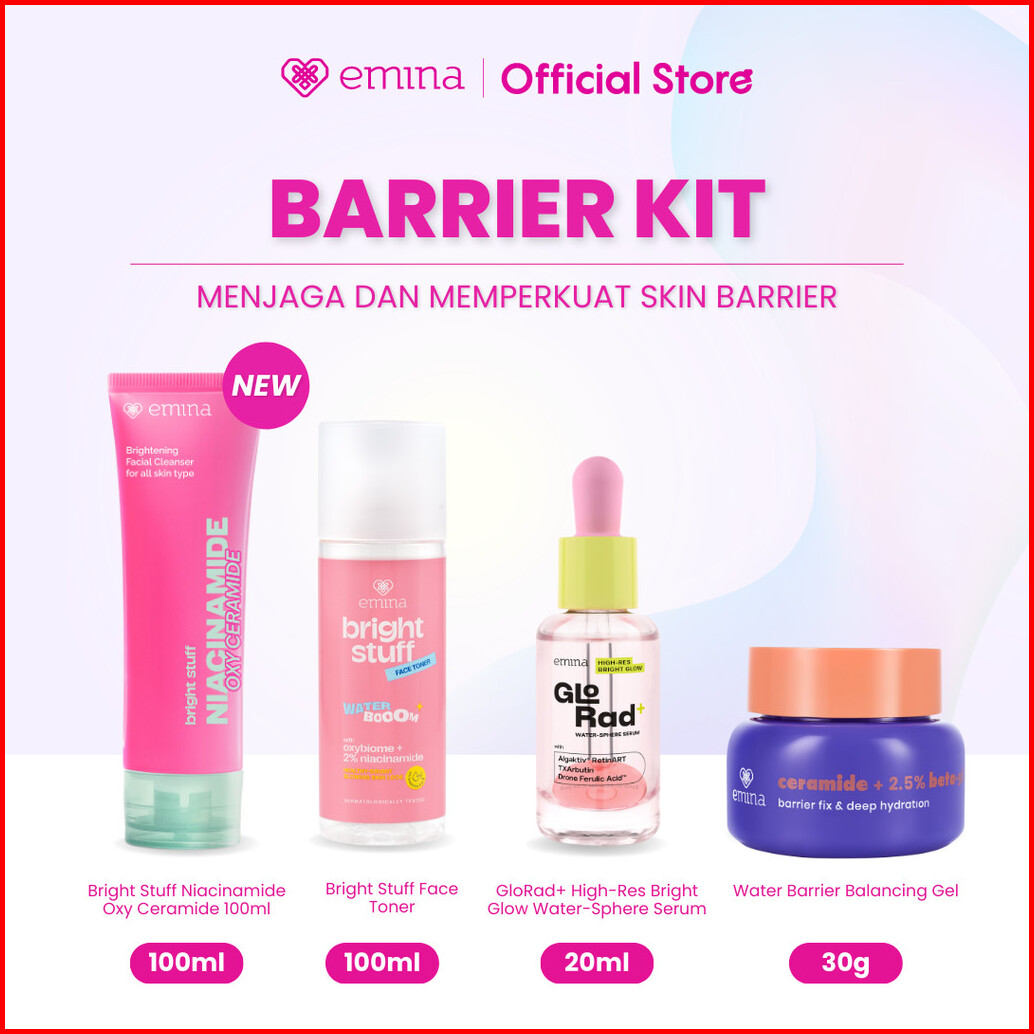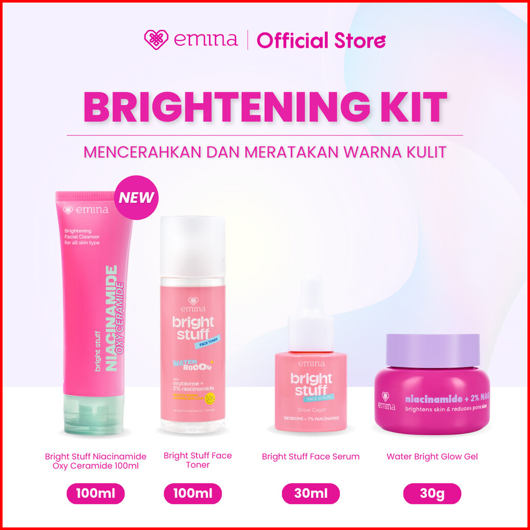 Emina 4pcs Bundle 4in1 Paket Skincare Moisturizer Serum Face Wash - Glowing Kit Acne Kit Dark Spot Bright Barrier Set