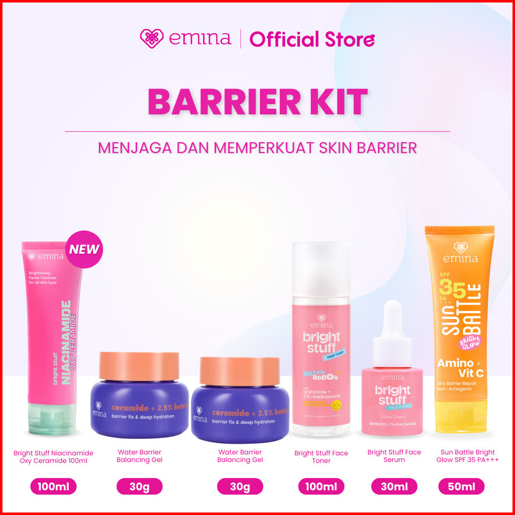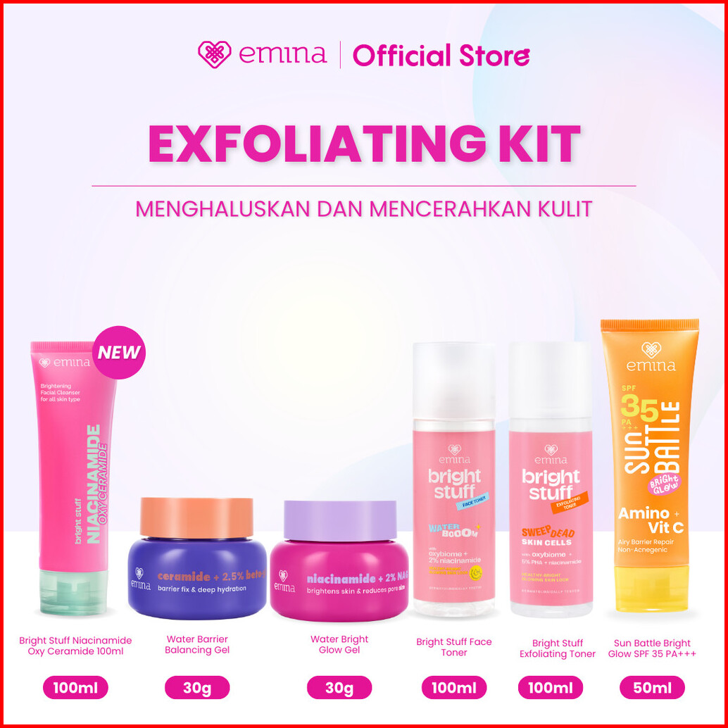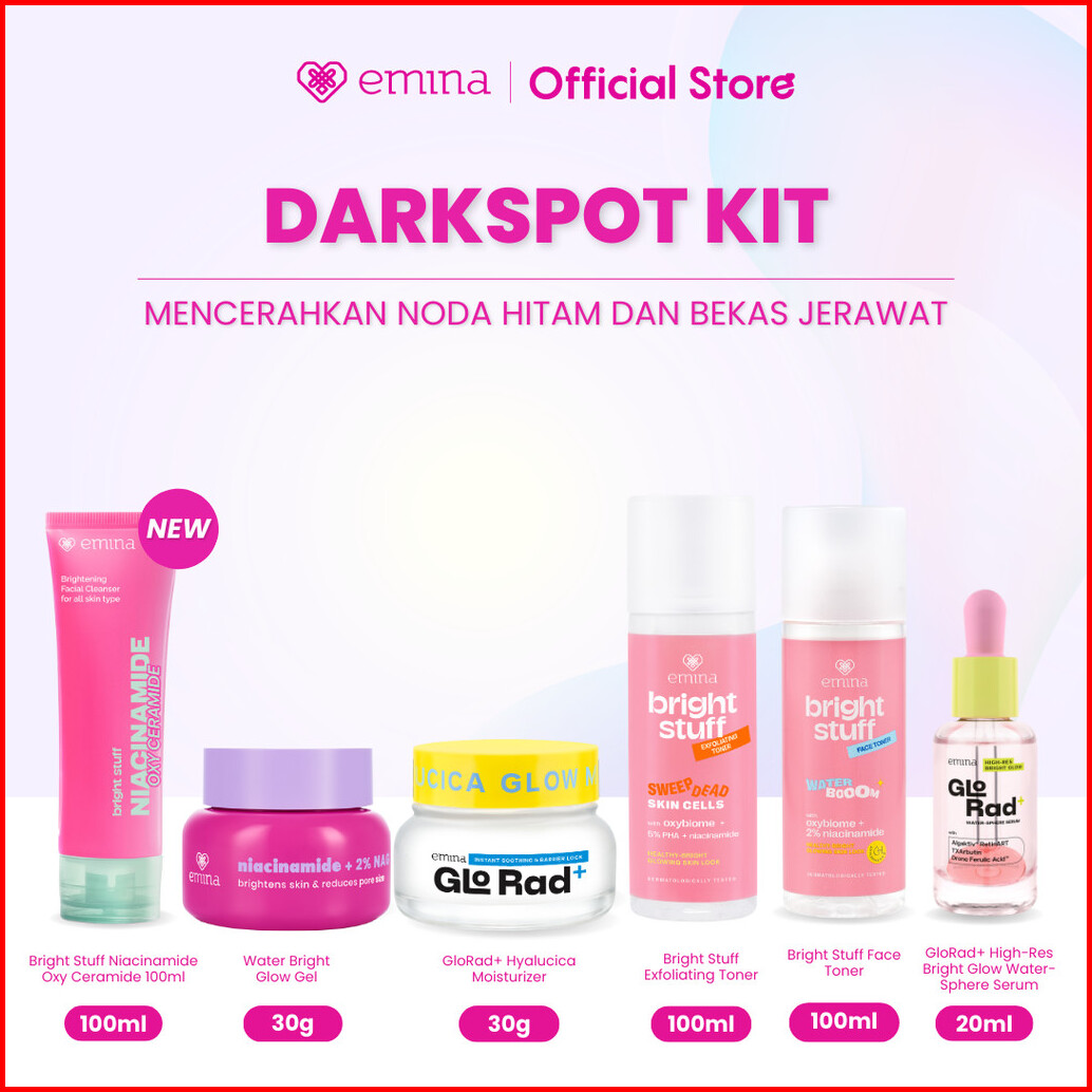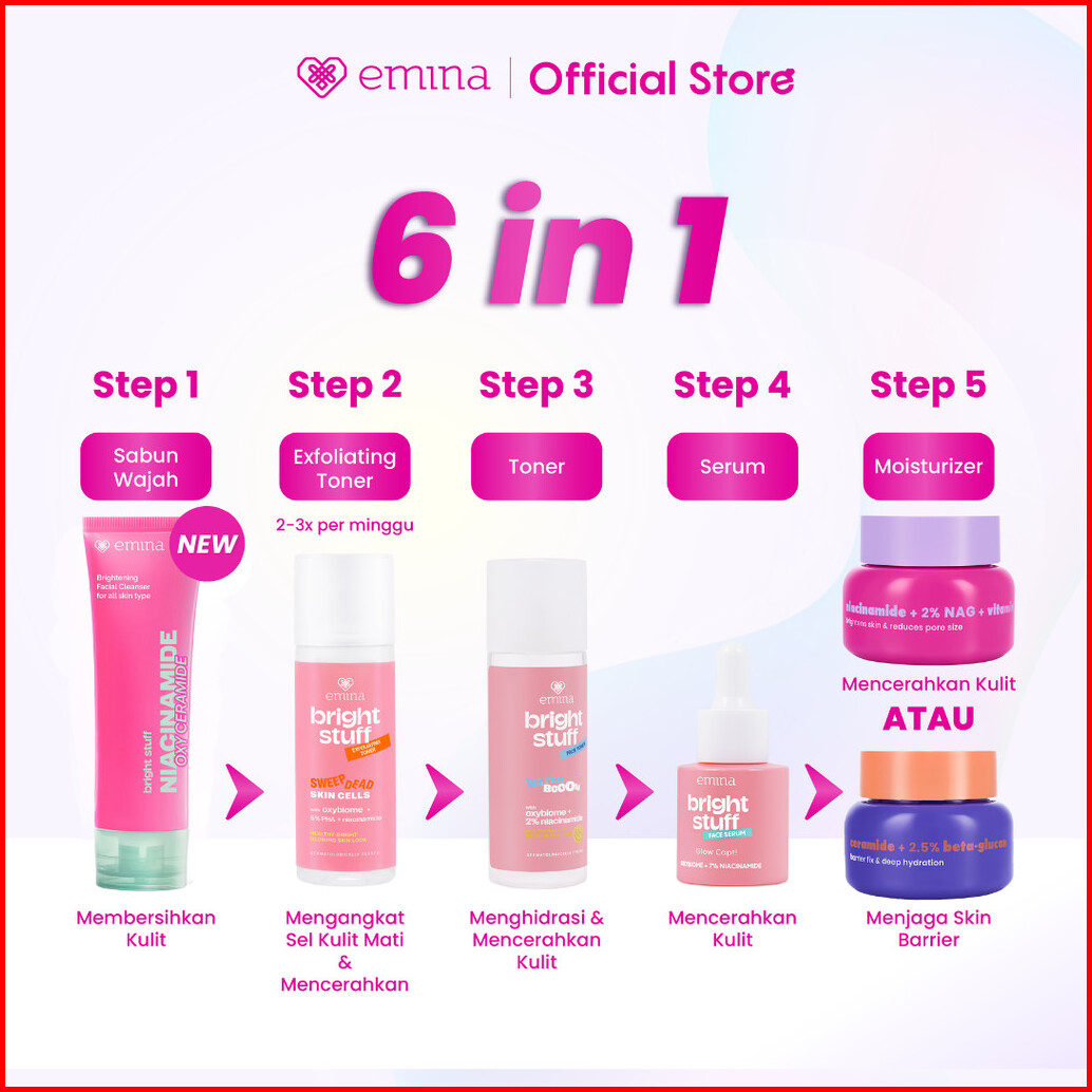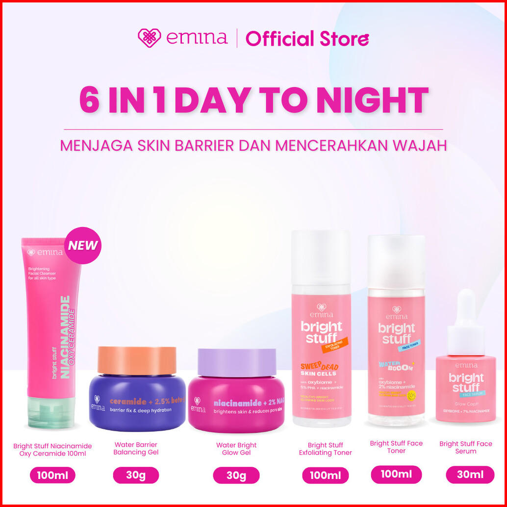 Emina Day Night 6in1 Glowing Set Bundle - Cleanser Brightening Moisturizer Serum Toner Exfoliating