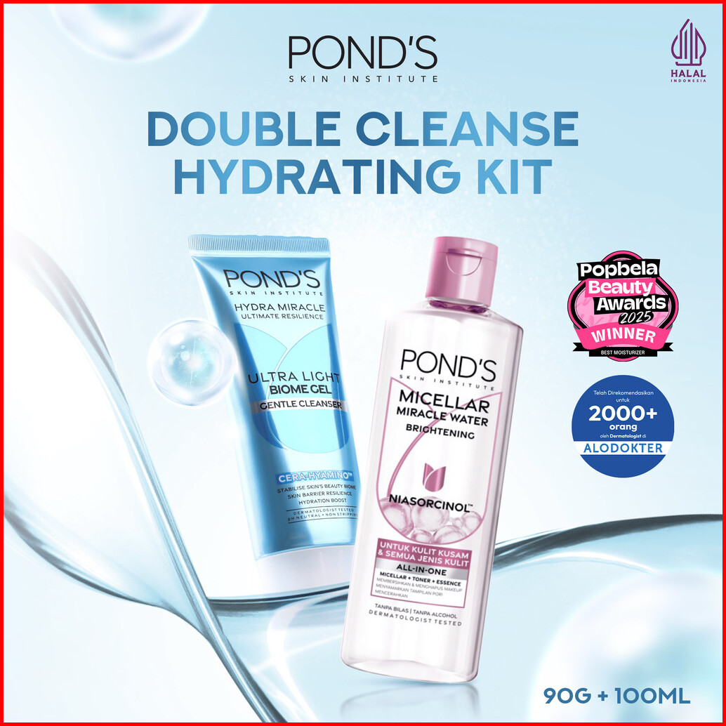 Double Cleanse Hydrating Kit Pond S Ultra Light Biome Gel Gentle Cleanser 90gr Micellar Water 100ml
