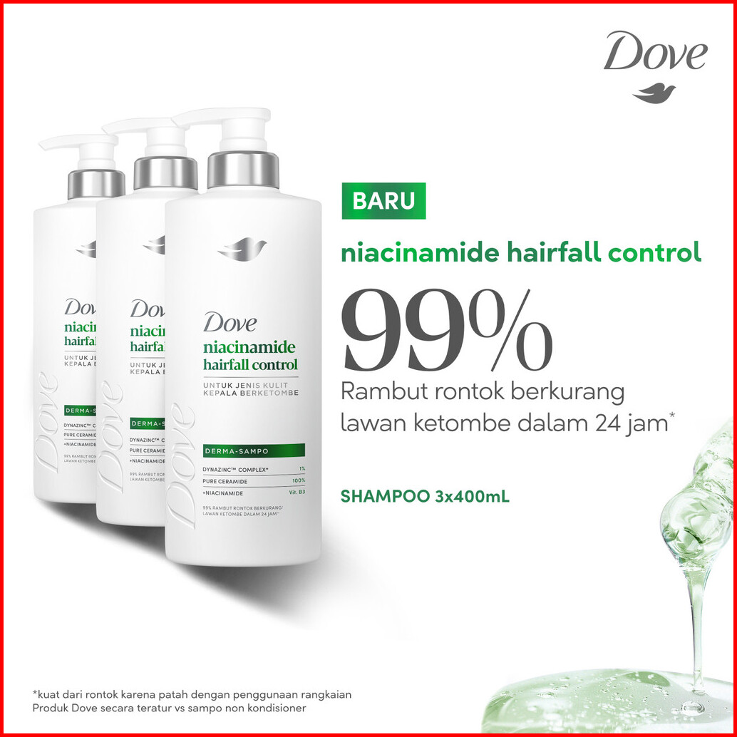 Dove Shampoo Niacinamide Hairfall Control 400ml X3 Sampo Perawatan Rambut Rontok Untuk Jenis Kulit Kepala Berketombe