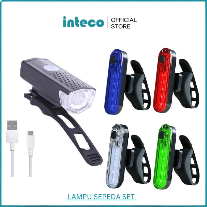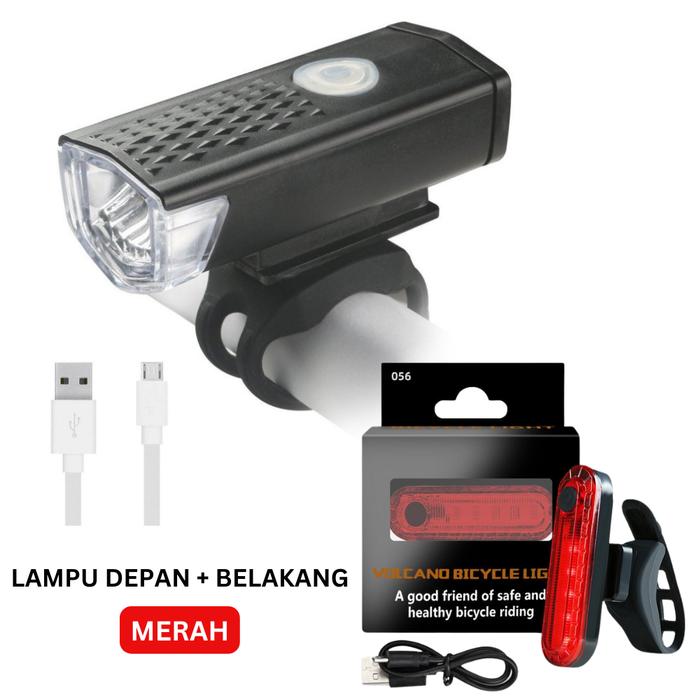 Lampu Sepeda Sepaket Depan Belakang USB LED Rechargeable Super Terang Anti Air Olahraga Outdoor - Set Merah