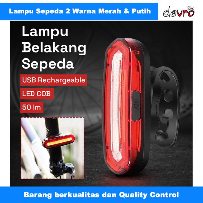 Lampu Belakang Sepeda LED COB USB Rechargeable 50 Lumens - Deemount AQY-096 - Merah