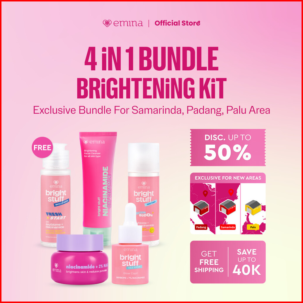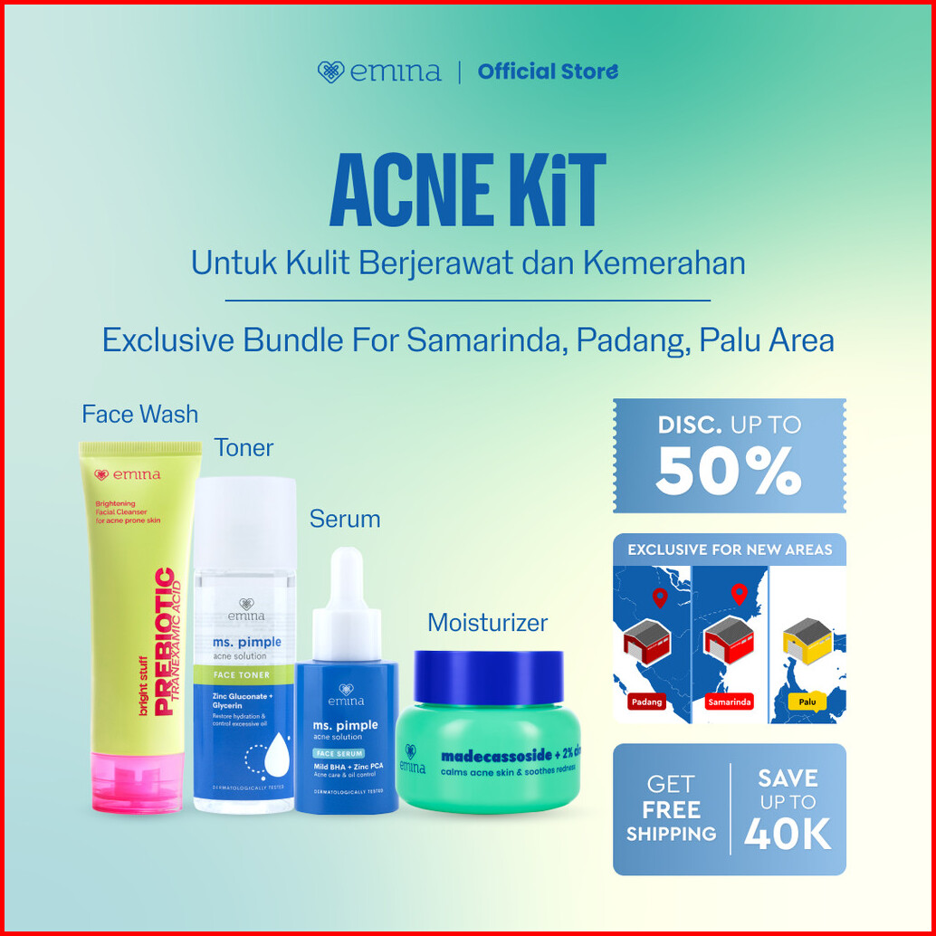 Special New Warehouse Emina 4pcs Bundle 4in1 Paket Skincare Moisturizer Serum Face Wash - Glowing Kit Acne Kit Dark Spot