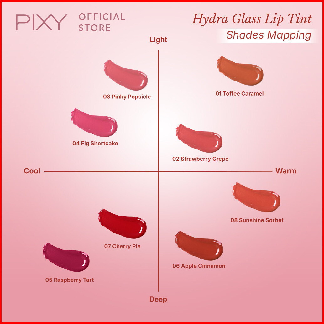Lip Tint 01 + 03, Lip Tint 02 + 03, Lip Tint 02 + 04, Lip Tint 03 + 05, Lip Tint 06 + 07, Lip Tint 06 + 08
