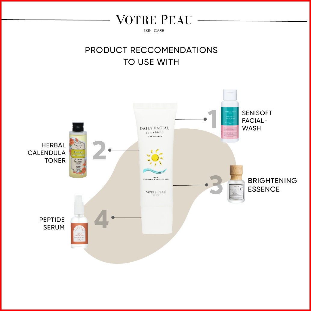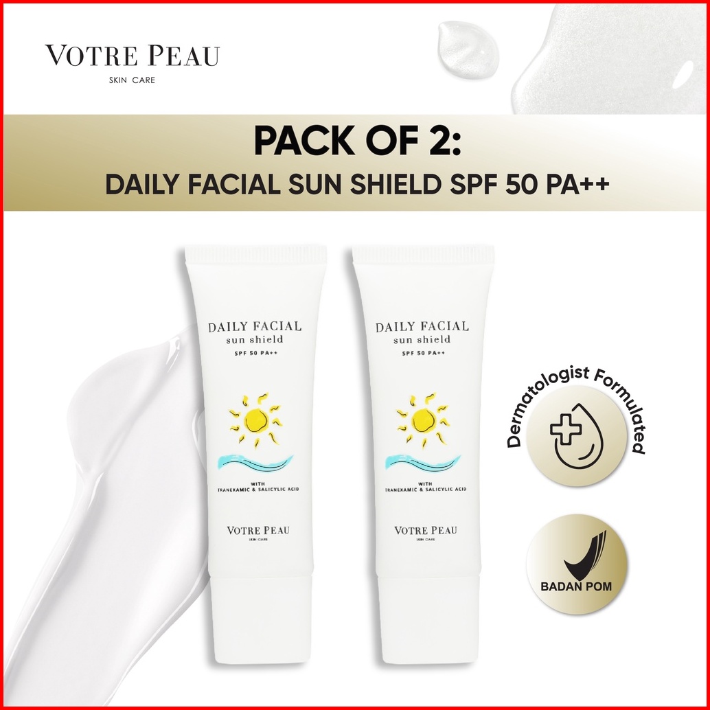Pack Of 2 - Votre Peau Skin Care Daily Facial Sun Shield Spf 50 Pa 30ml - Sunscreen Dengan Tranexamic Acid Menyamarkan N