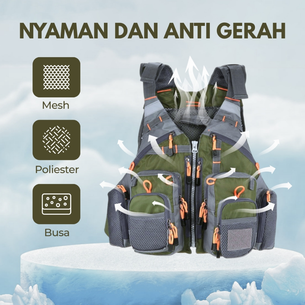 Rompi Pancing Fishing Life Jaket Pelampung Multi Slot