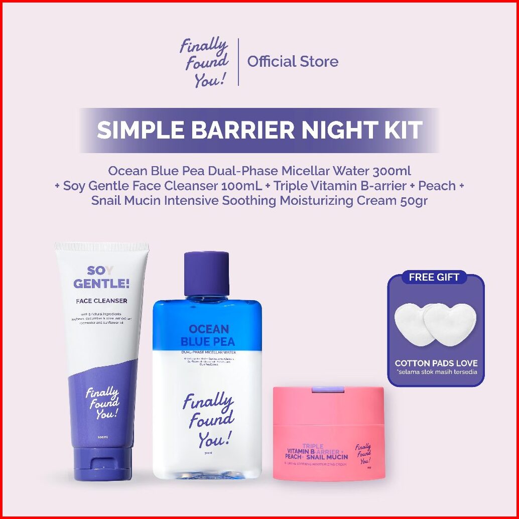 Finally Found You Simple Barrier Night Kit Ocean Blue Pea Micellar Water 300ml Soy Gentle Face Cleanser 100ml Triple Vit