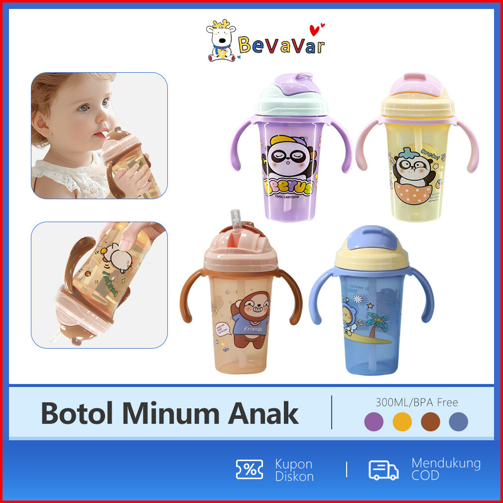 Bevavar Botol Minum Anak Gelas Minum Bayi Sedotan Sippy Cup Anti Tumpah Training Cup 300ml