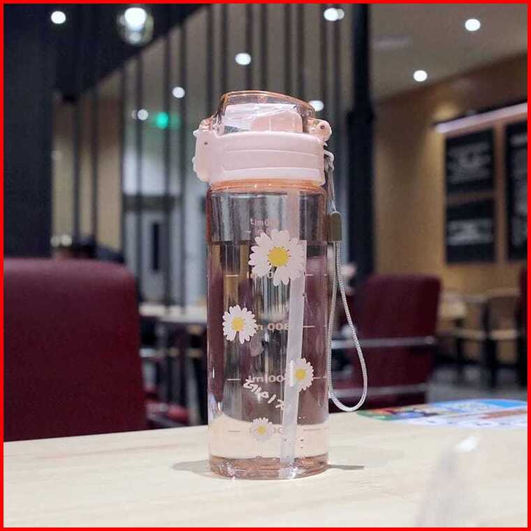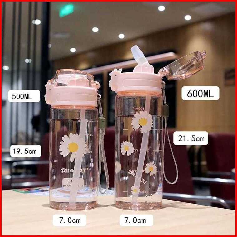Botol Minum Anak Bunga Daisy Botol Minum Flip Cover Transparan Kapasitas 600ml Free Tali Pendek Sedotan Kode 1828