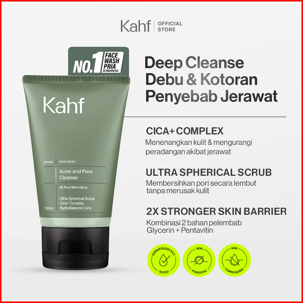 New Look Better Formula Kahf Face Wash Acne And Pore Cleanse Scrub 100 Ml - Sabun Cuci Muka Pria Dengan Scrub Untuk Memb