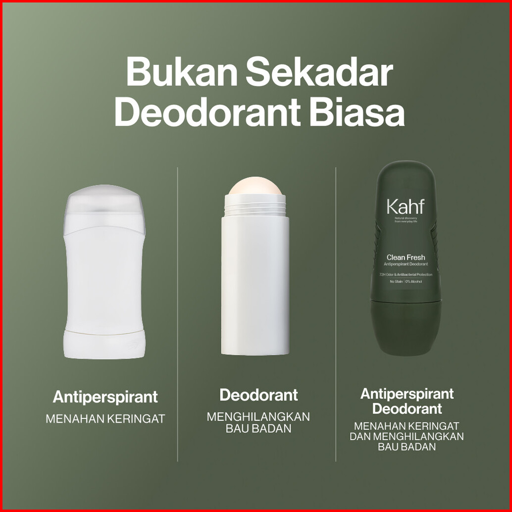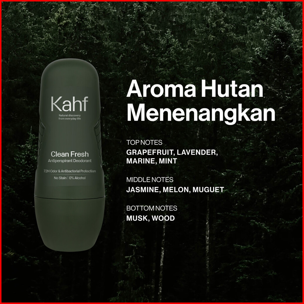 Kahf Clean Fresh Antiperspirant Deodorant Roll On 45 Ml - Freshness All Day 0 Alcohol Easy Application - Deodoran Pria M