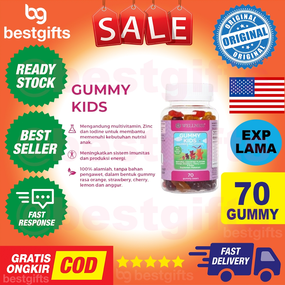 WELLNESS GUMMY KIDS SUPLEMEN VITAMIN ANAK MULTI VITAMIN CHILDREN DAYA TAHAN TUBUH TULANG 70 GUMMIES