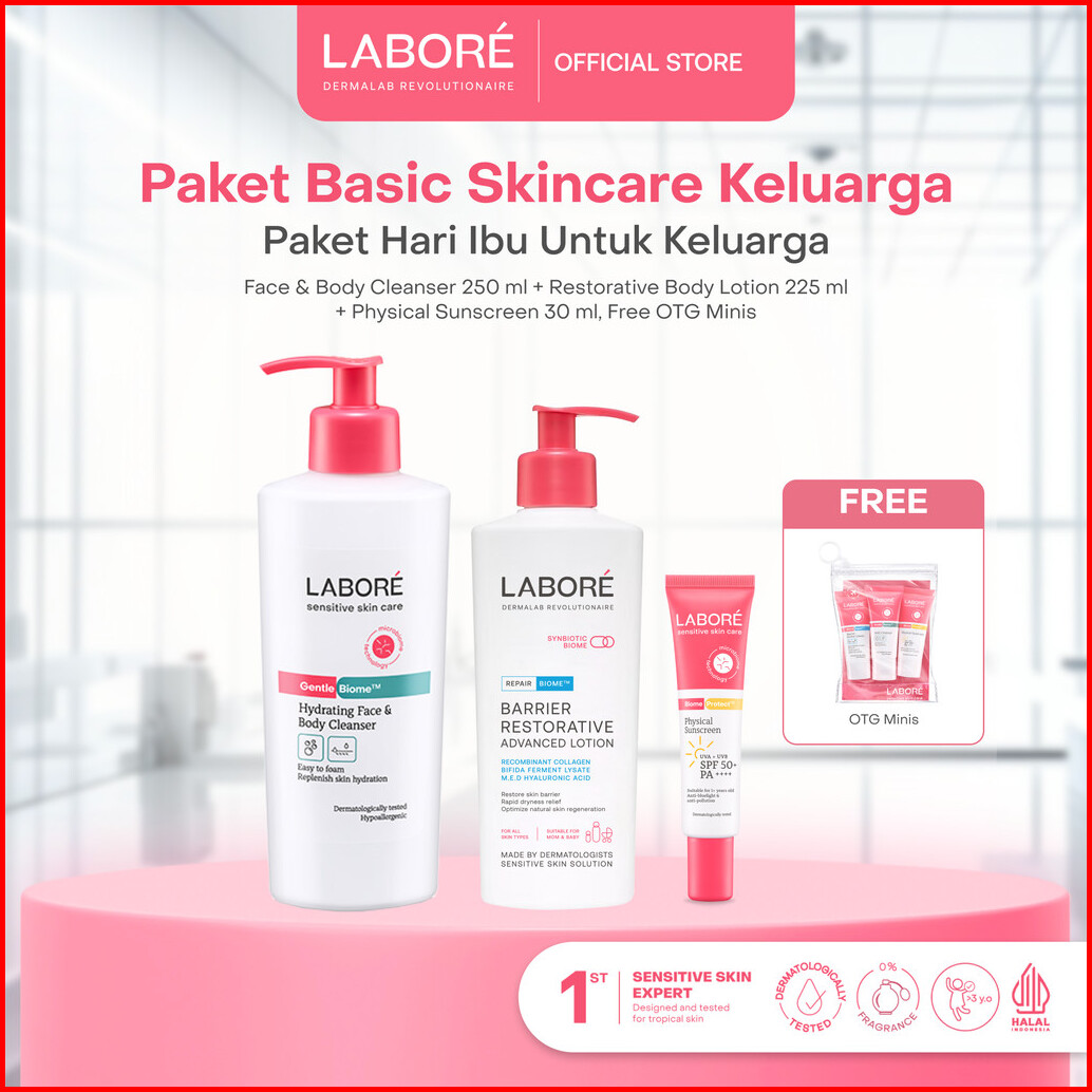Labore Paket Basic Skincare Keluarga - Paket Hari Ibu Untuk Keluarga-face Body Cleanser 250ml Restorative Body Lotion 22