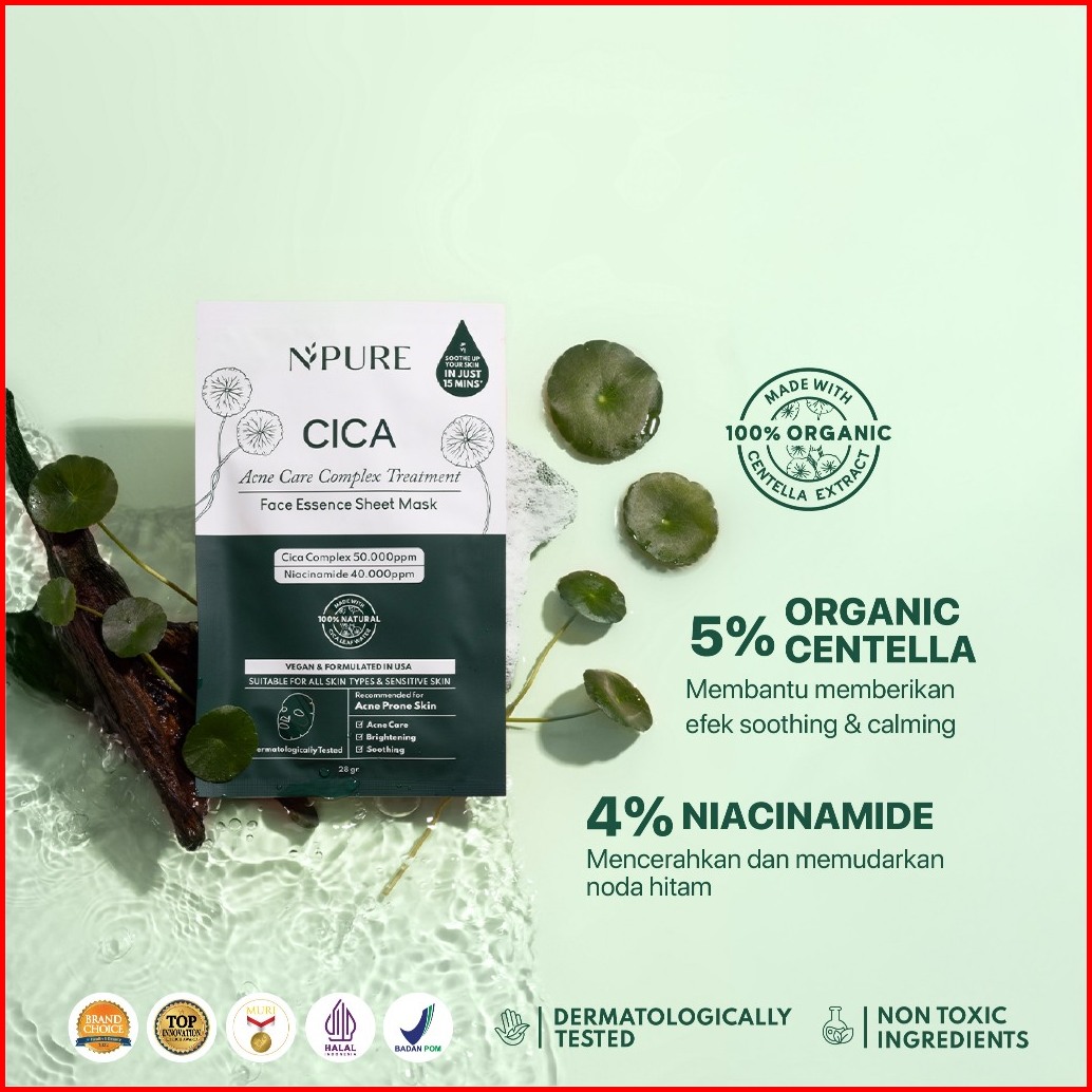Bundle 6pcs - Npure Micellar Water 300ml Cica Facial Wash 100ml Cica Toner 150ml Cica Sheet Mask Sunscreen Matte Lip Glo