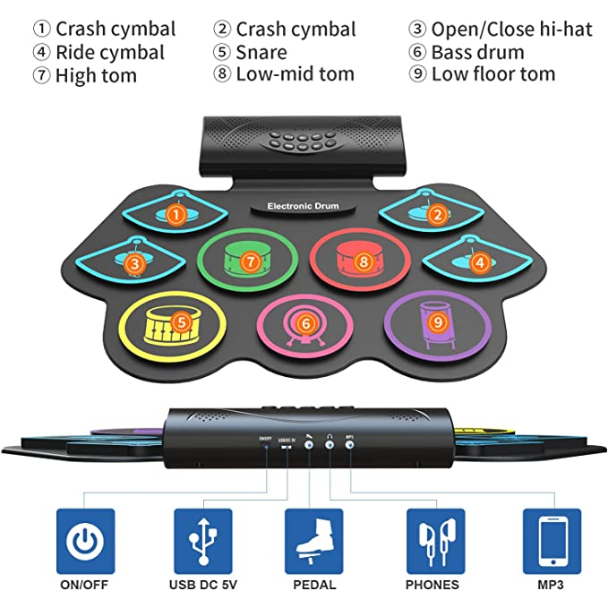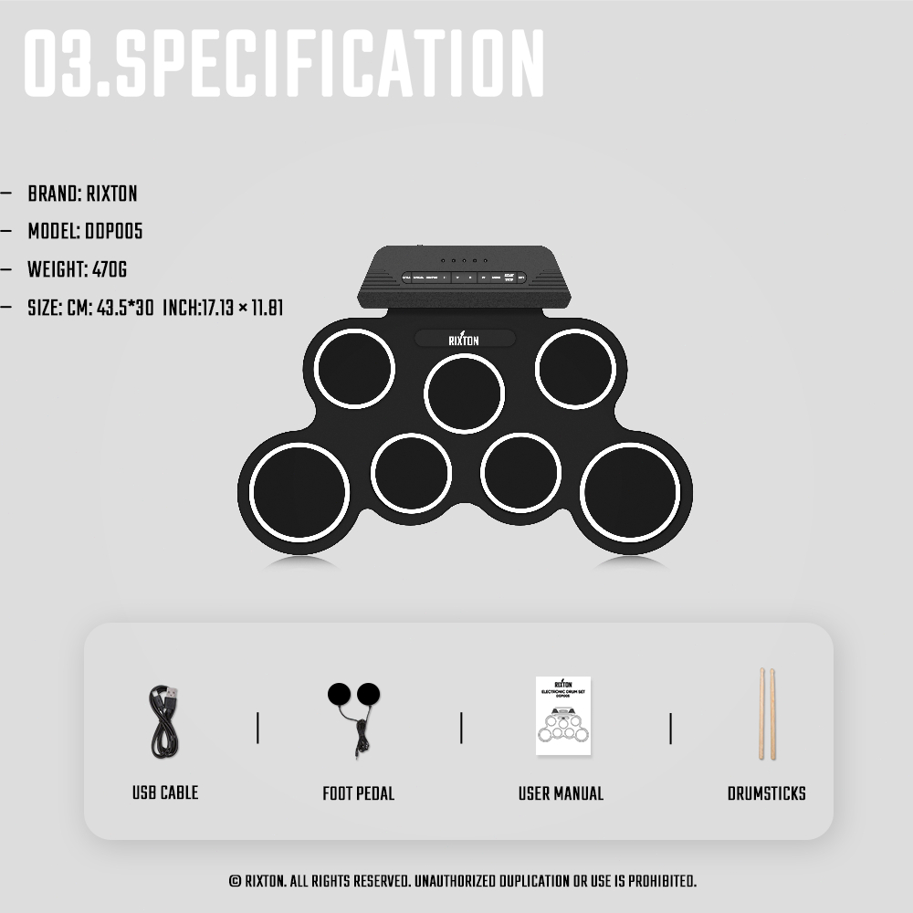 FLASH SALE Elektronik Portabel Digital USB 7 Bantalan Roll up Set Silicone Pad Kit