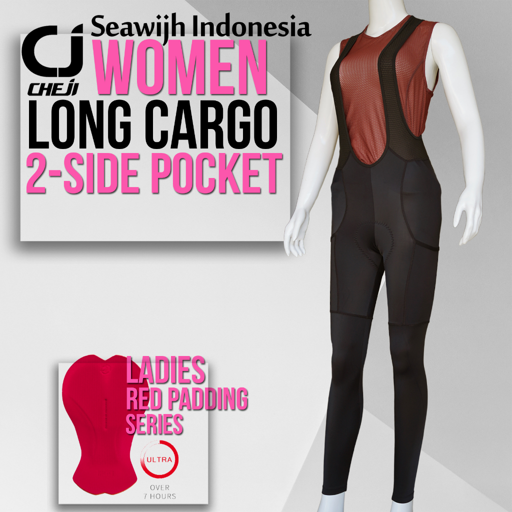Bib Panjang Cargo Wanita Celana Padding Sepeda Balap Saku Cheji Women Long Pants Pocket Cycling