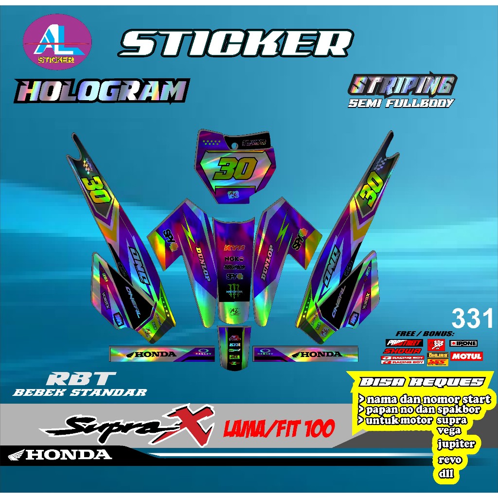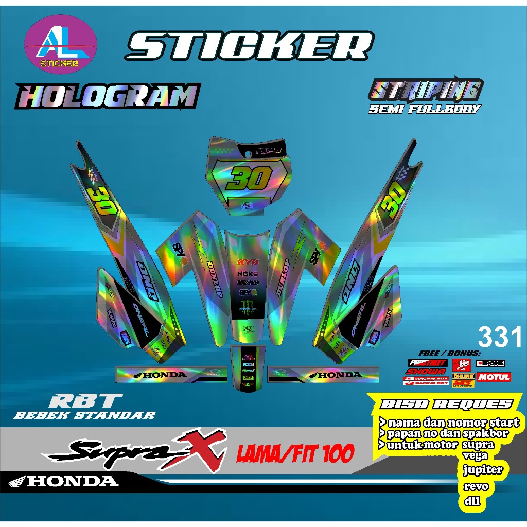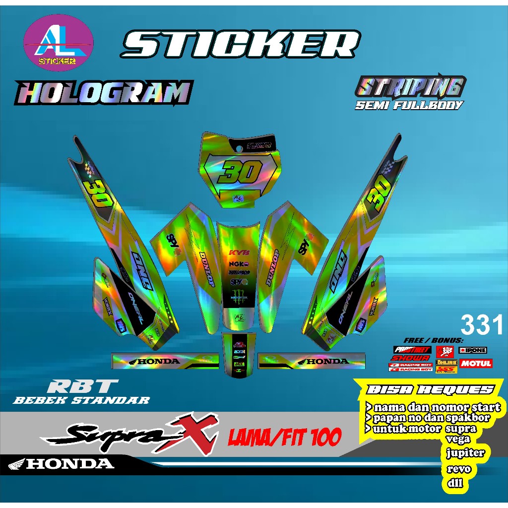 Sticker RBT HOLOGRAM SUPRA X LAMA/FIT 100 SEMI FULL BODY BEBEK MODIF SUPERMOTO TERBARU TERVIRAL MOTOR TRABAS AL V 331