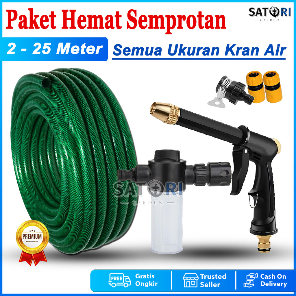 PAKET SEMPROTAN SELANG AIR BENANG HIJAU ANTI LUMUT 5-20 METER JET SPRAY ALAT CUCI MOTOR MOBIL