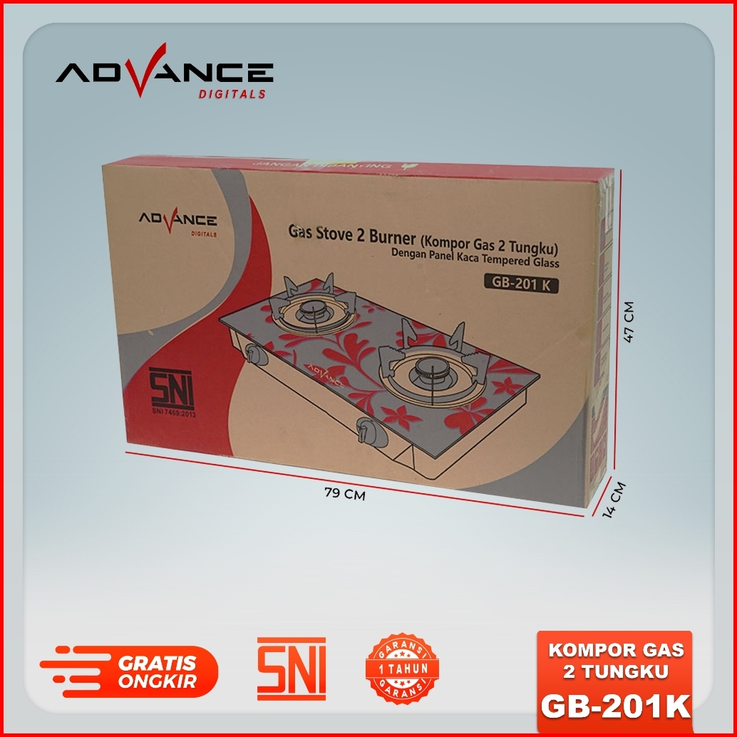 Advance Kompor Kaca Tempered Glass 2 Tungku Advance Gb-201k Garansi 1 Thn