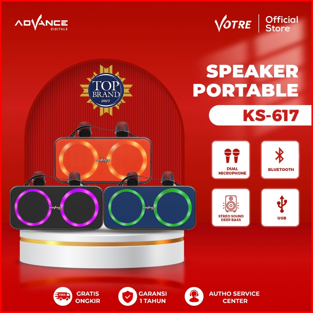 Advance - Speaker Portable Bluetooth Dengan 2 Mic Wireless Karaoke Ks-617
