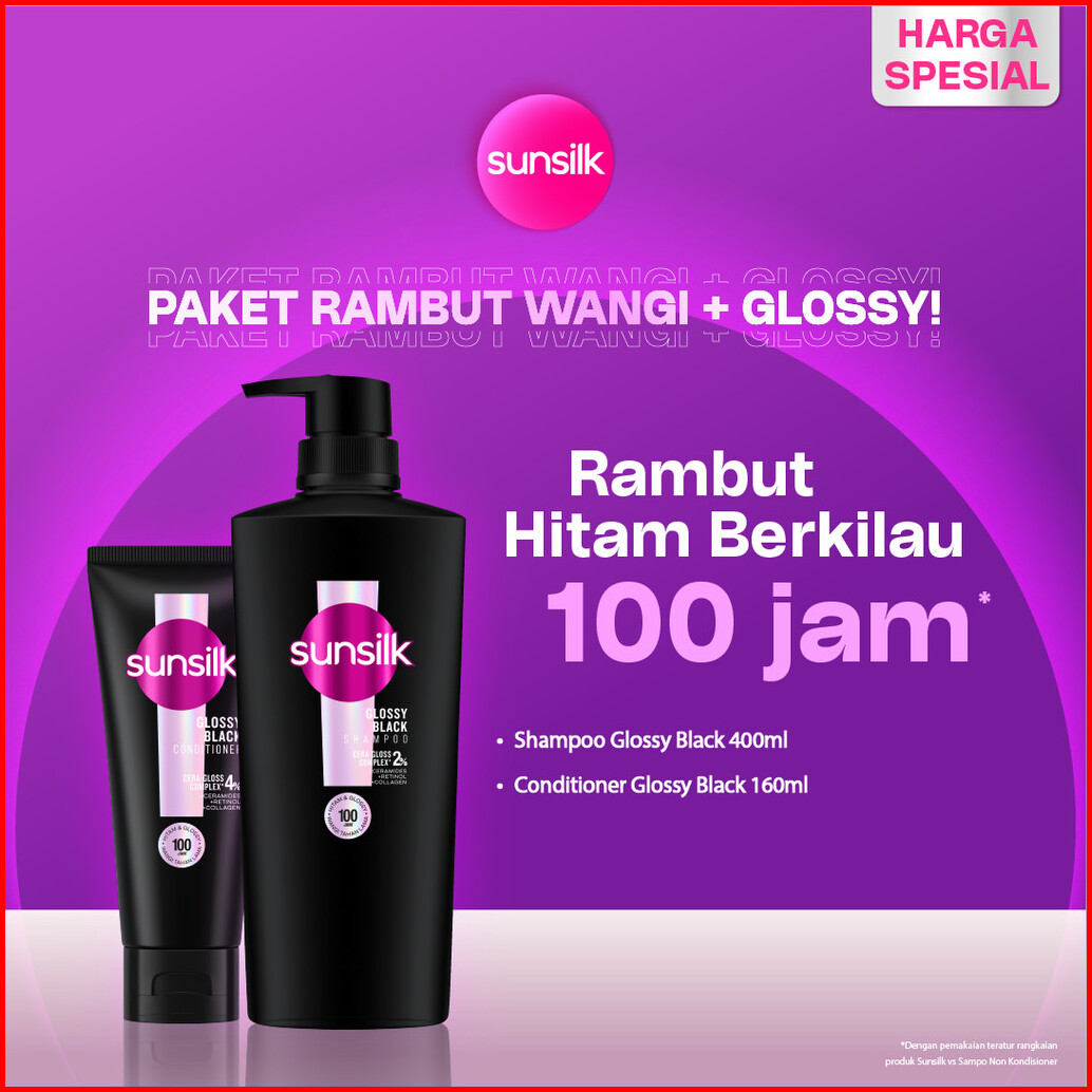 Paket Rambut Wangi Glossy Sunsilk Shampoo Glossy Black 400ml Sunsilk Conditioner Glossy Black 160ml