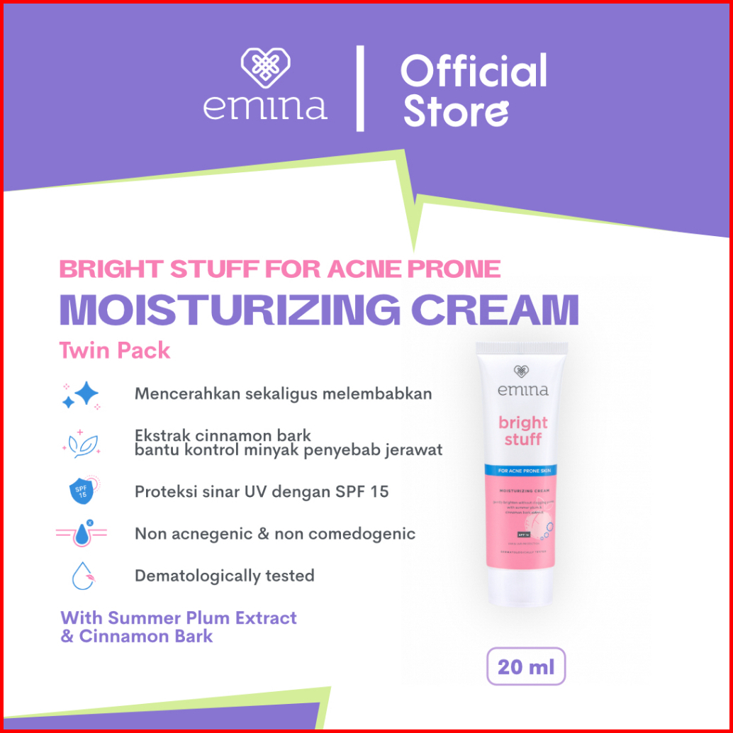 Emina Bright Stuff For Acne Prone Skin Moisturizing Cream 20 Ml Twin Pack - Pelembab Wajah Mencerahkan Untuk Kulit Mudah