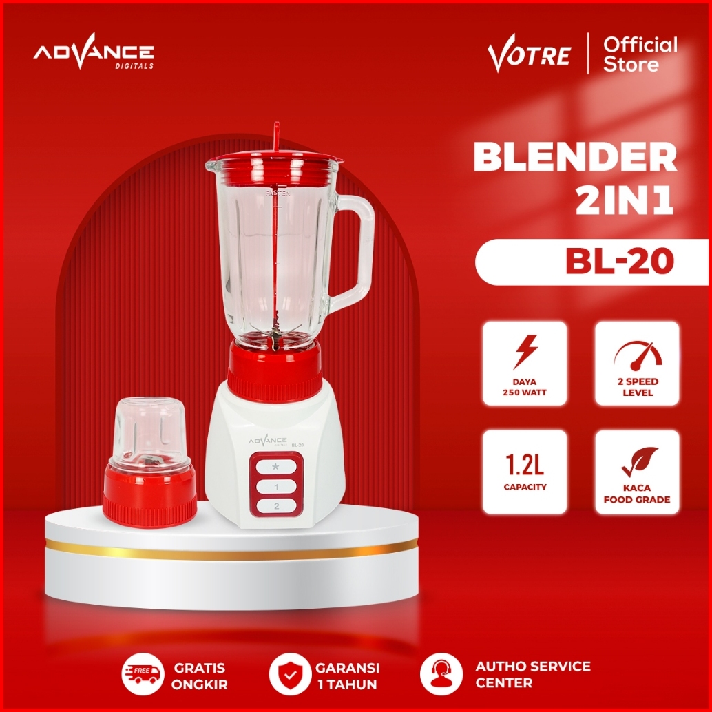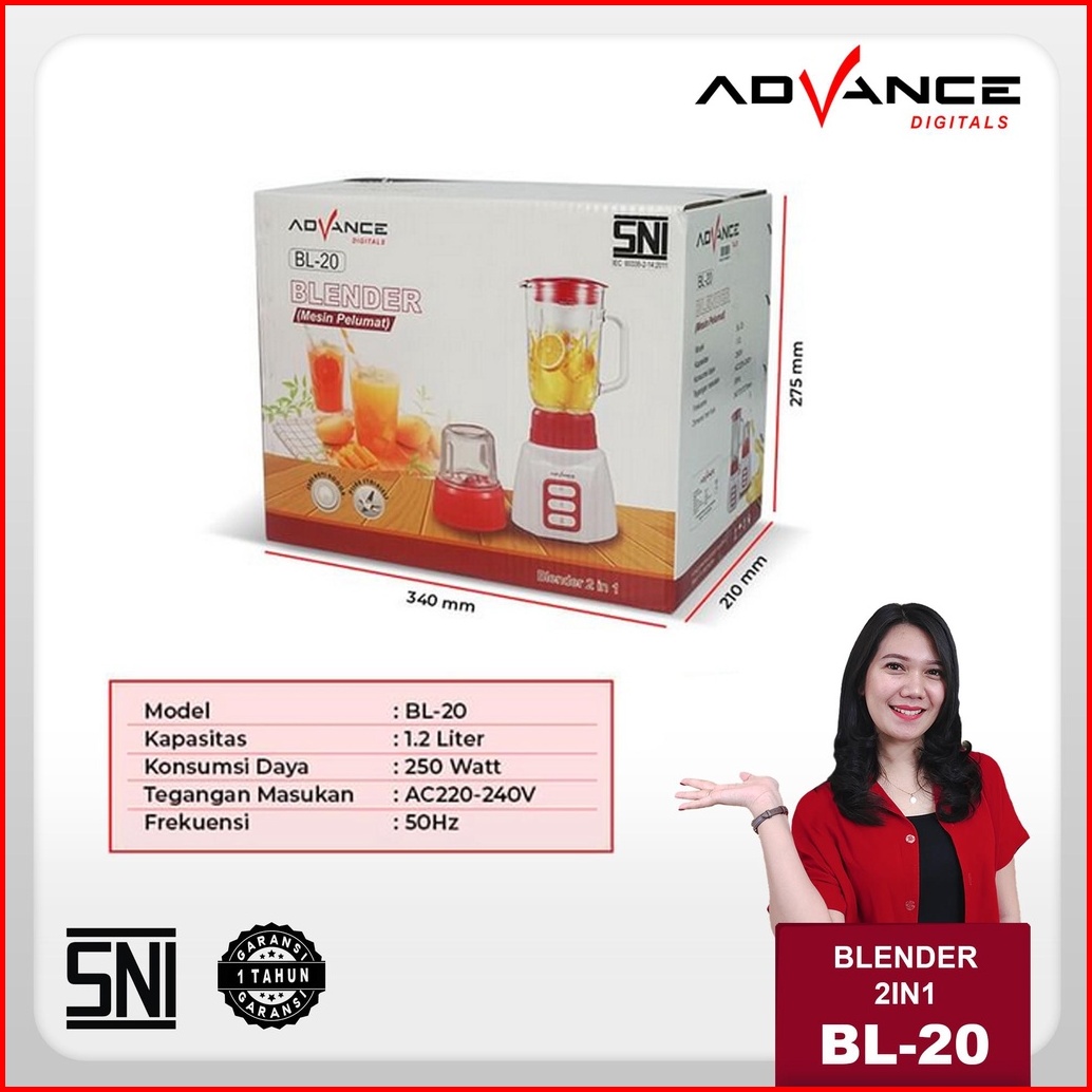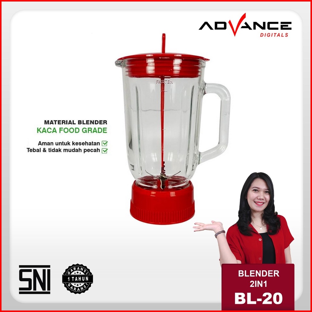 Advance Bl-20 Blender Kaca Listrik Kapasitas 1.2 Liter Kecepatan Variabel 250 Watt Garansi Resmi 1 Tahun