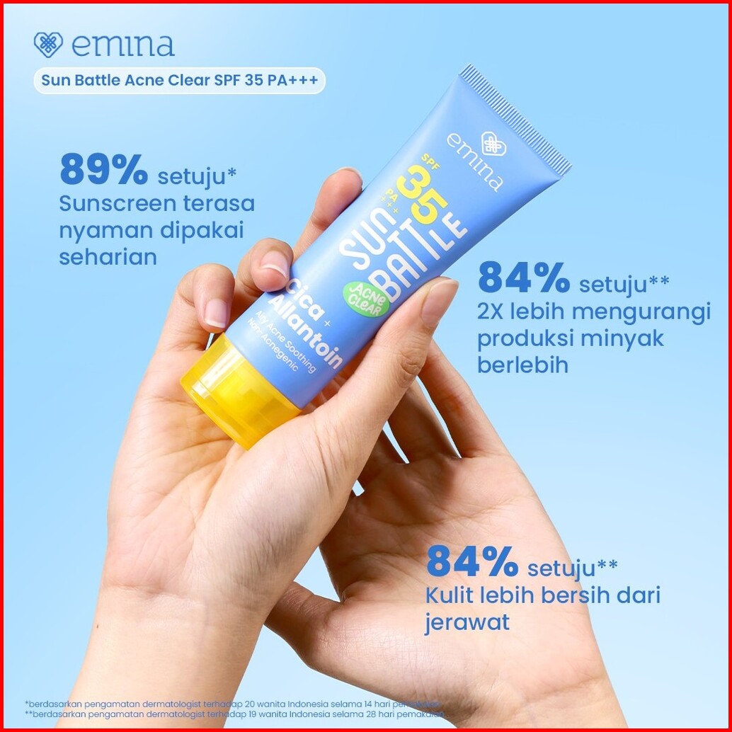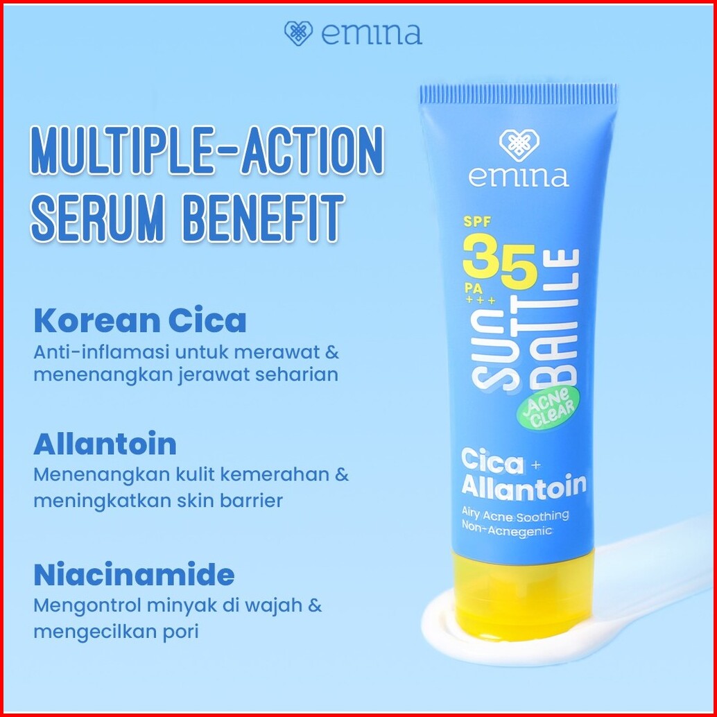 Creator S Pick Emina Sun Battle Spf 35 Pa Acne Clear Cica Allantoin Airy Acne Soothing 50 Ml - Sunscreen Untuk Melindung