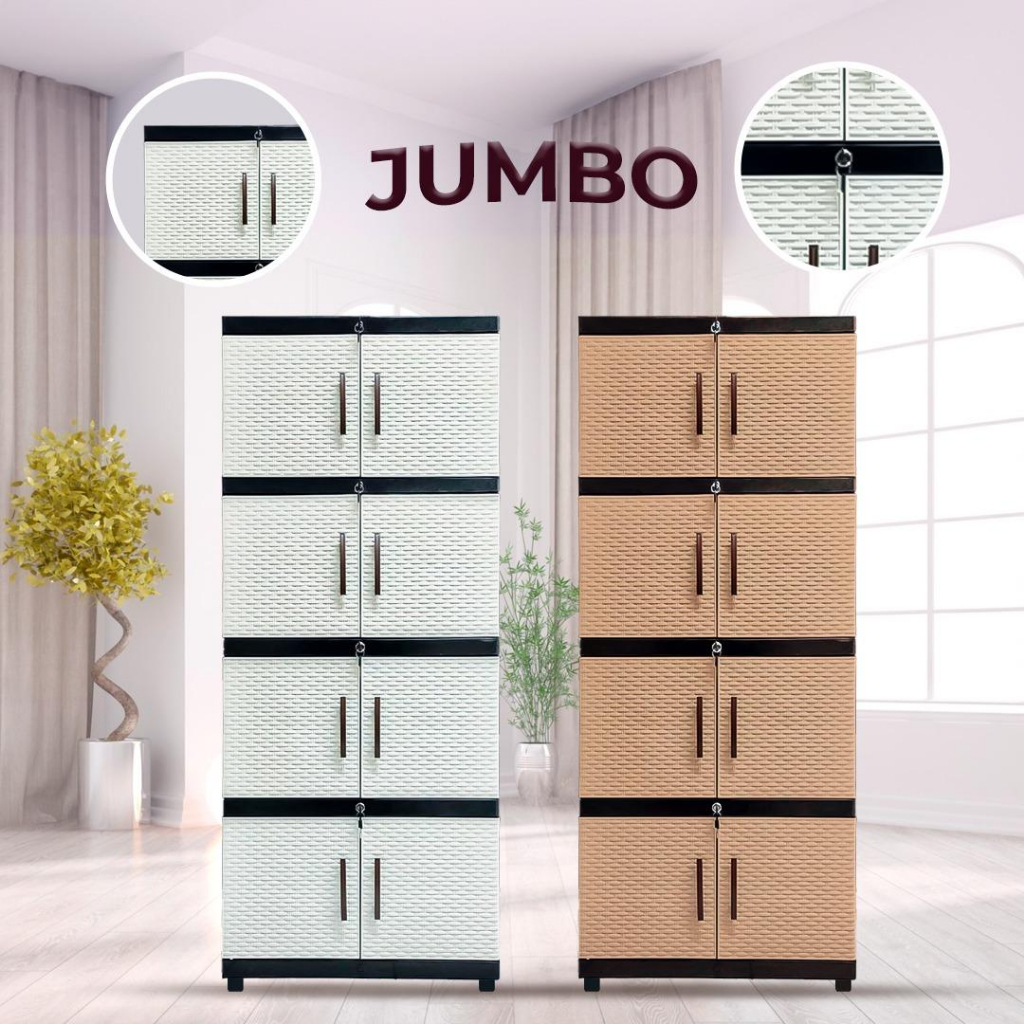 Lemari Plastik Jumbo Susun 4 Galaxy kunci Motif Rotan Furniture