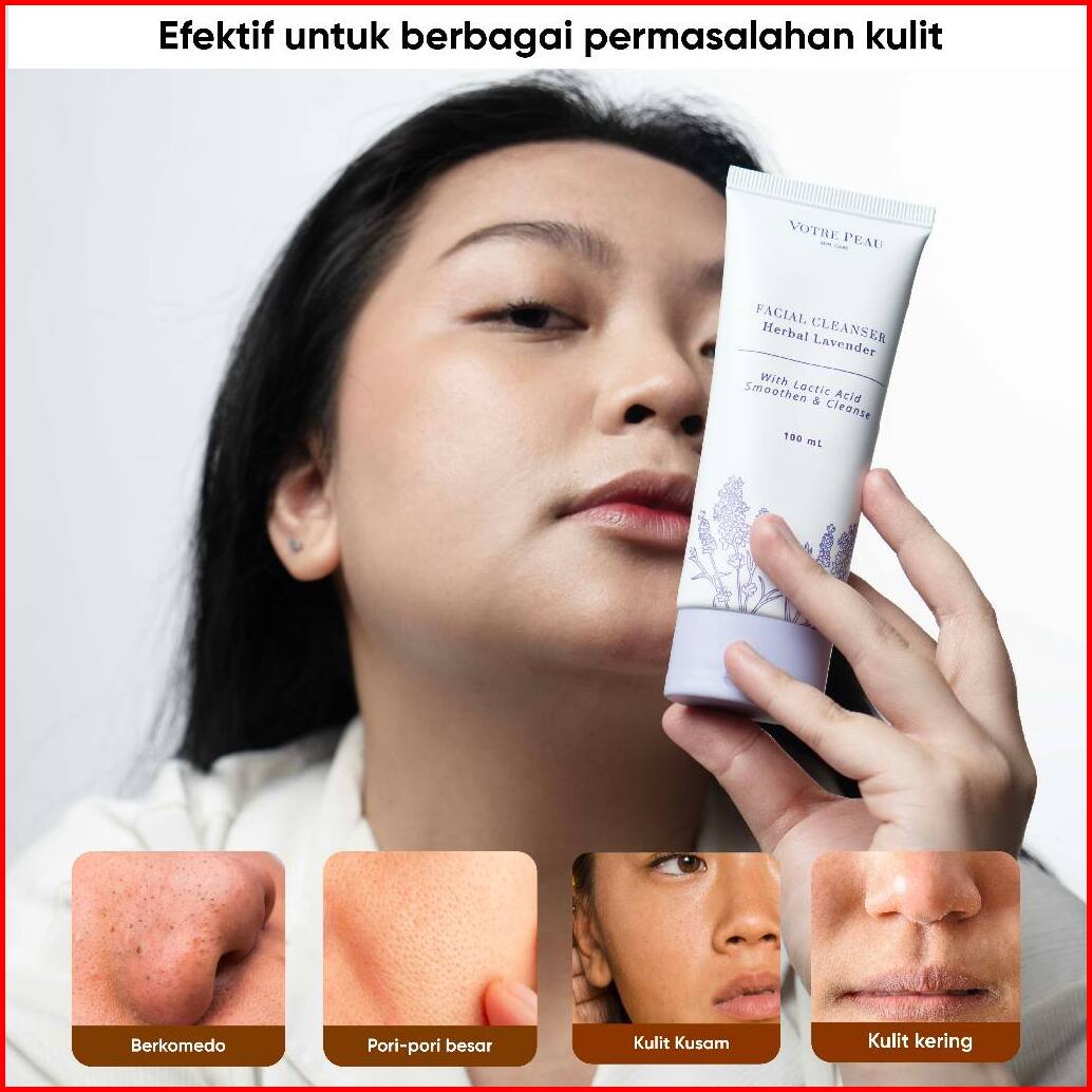 Votre Peau Herbal Lavender Facial Cleanser With Lactic Acid 100ml - Pembersih Wajah Untuk Mengurangi Komedo Mengangkat S