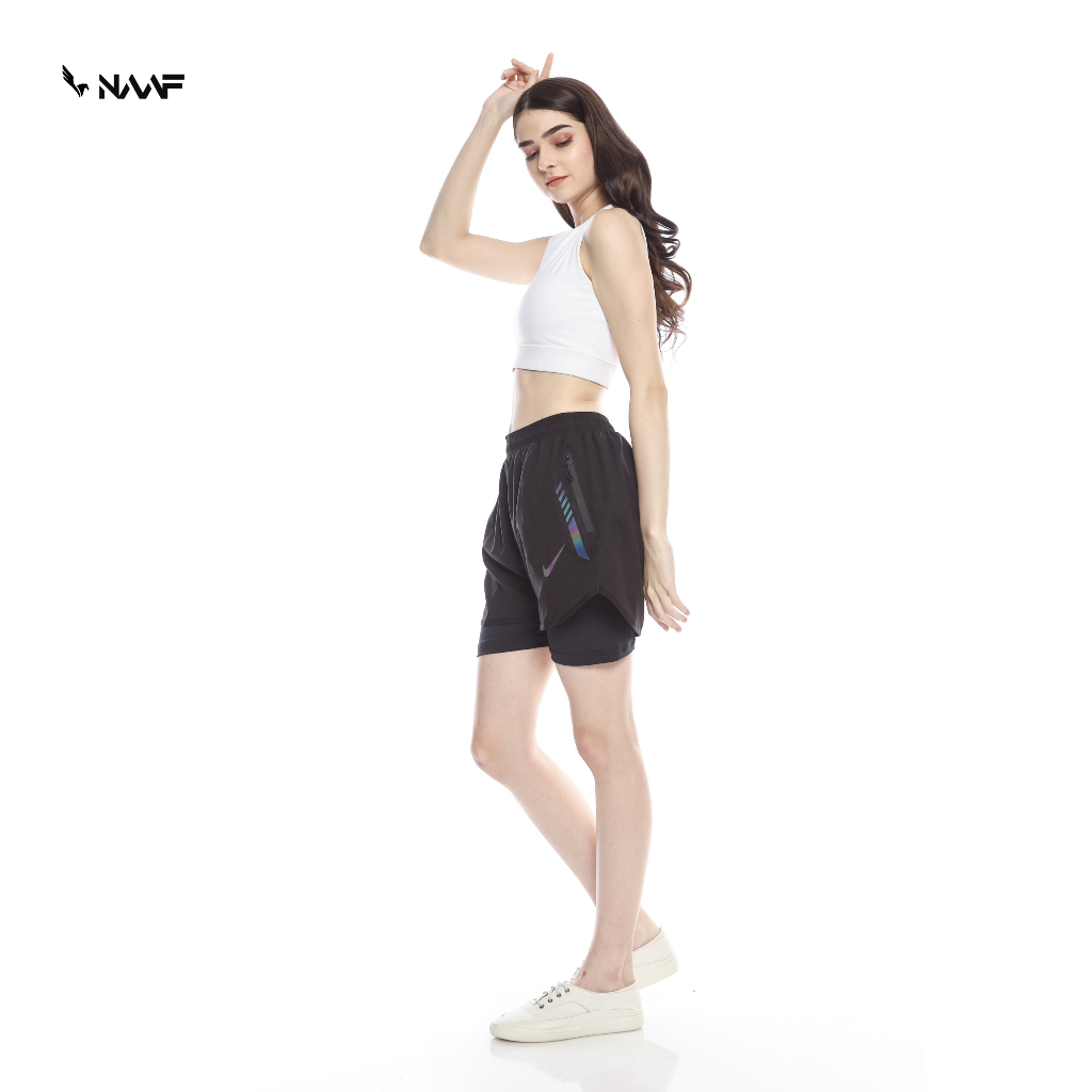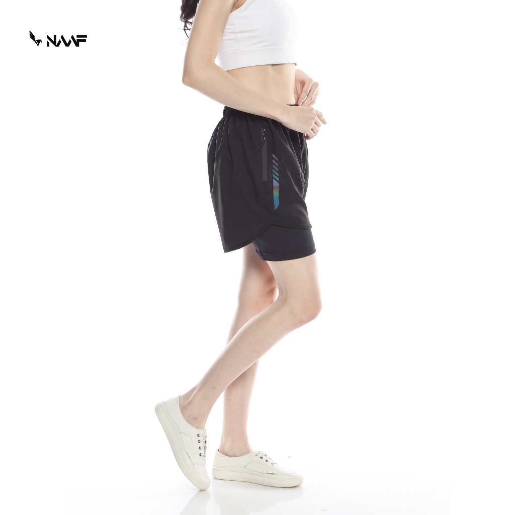 NAAF - Celana Olahraga Wanita Pendek Jumbo 2 In 1 Parasut Stretch Plus Legging Hitam