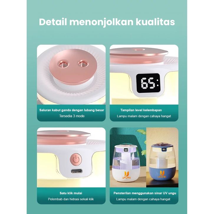 Humidifier Air Ultrasonic Diffuser Purifier Pelembab Aromatherapy Sinar UV Pembasmi Bakteri