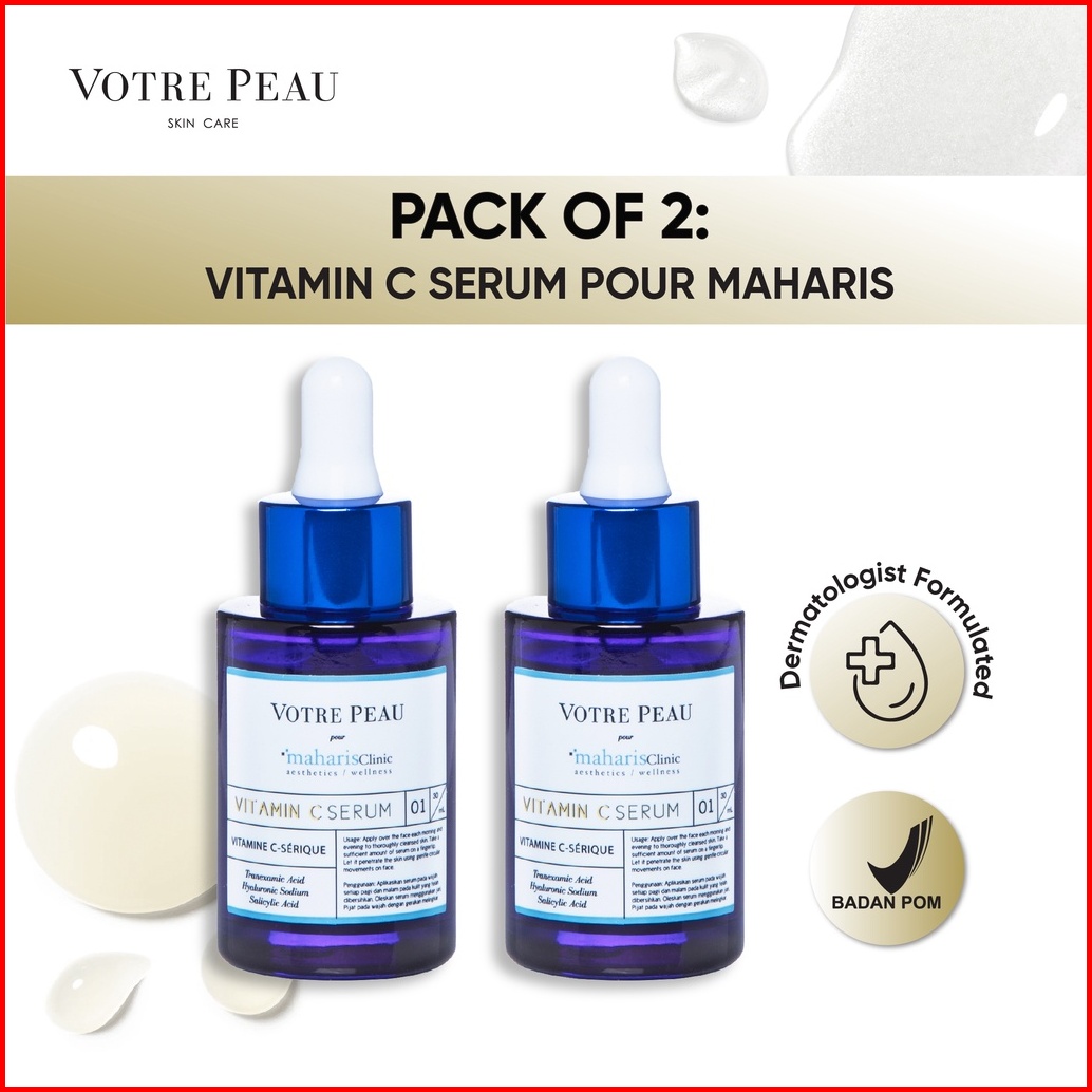 Pack Of 2 - Votre Peau Skin Care Vitamin C Serum Pour Maharis Clinic 30ml - Serum Pencerah Tranexamic Acid