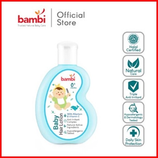 Bambi Baby Hair Lotion 100ml Allantoin Vit E Aloe Vera Candlenut Vitamin Rambut - Penumbuh Rambut Bayi Melembabkan